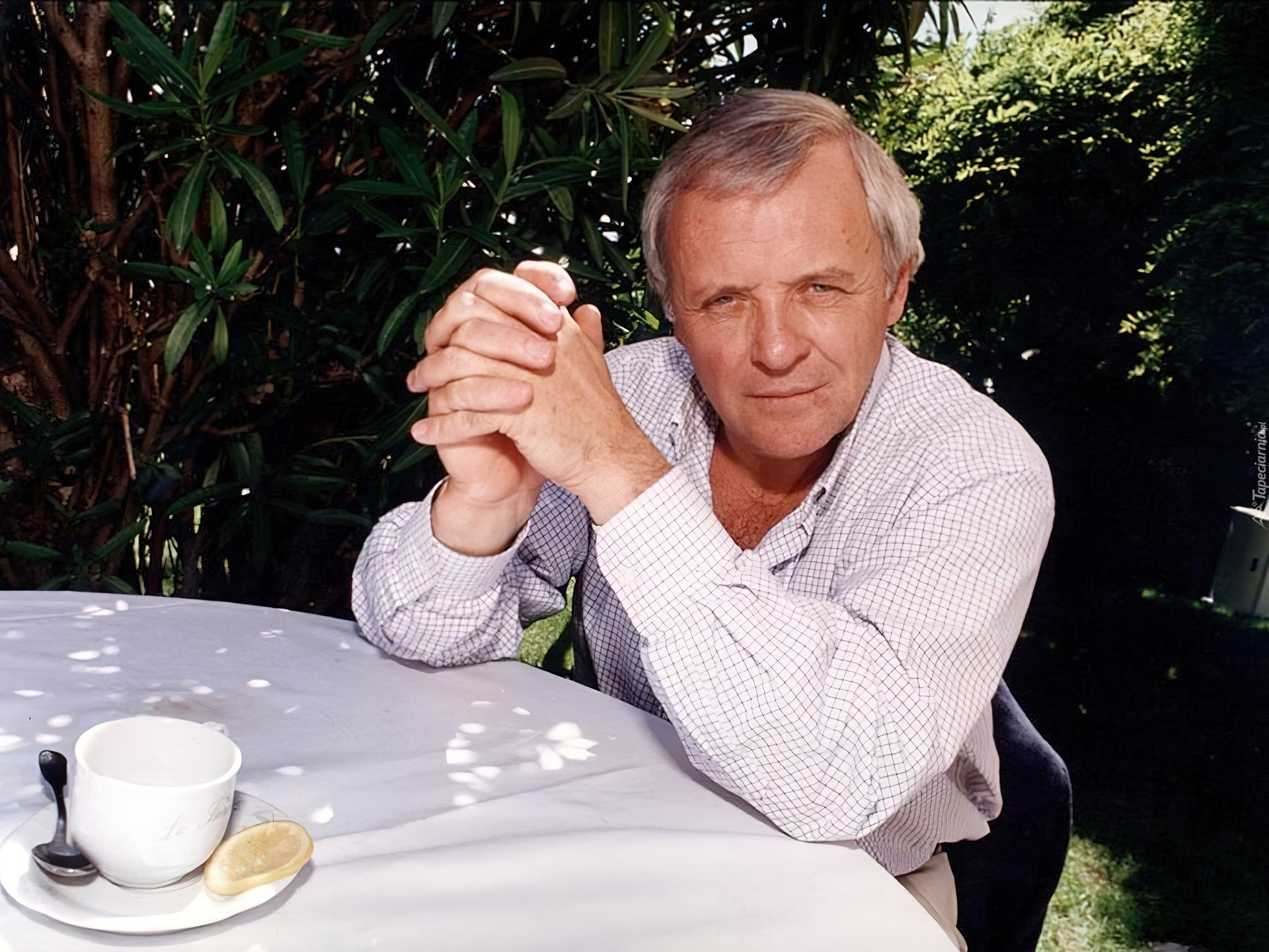 Edytor tapety: Anthony Hopkins,stół, filiżanka