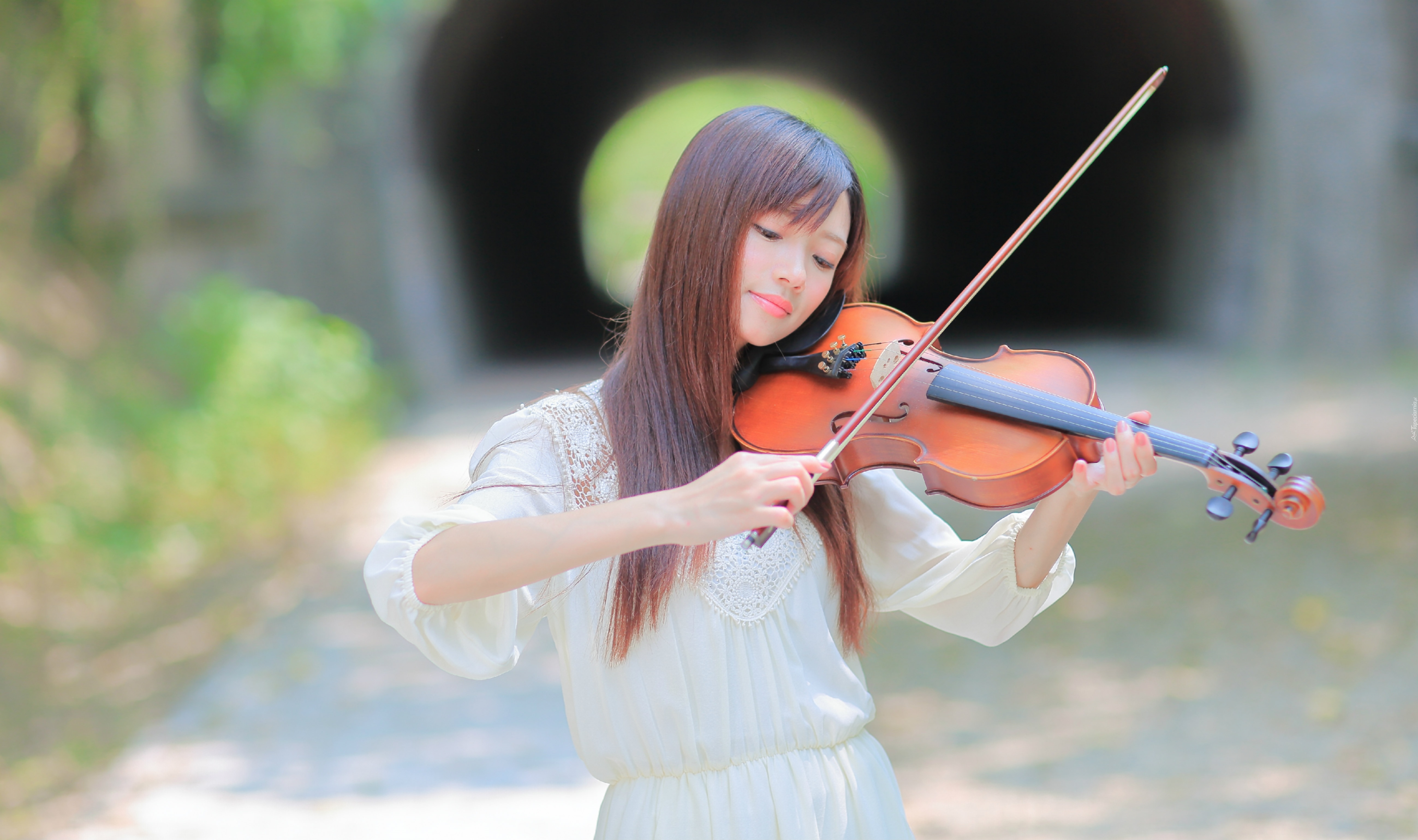 Edytor tapety: Piękna, Azjatka, Skrzypce, Muzyka, Droga