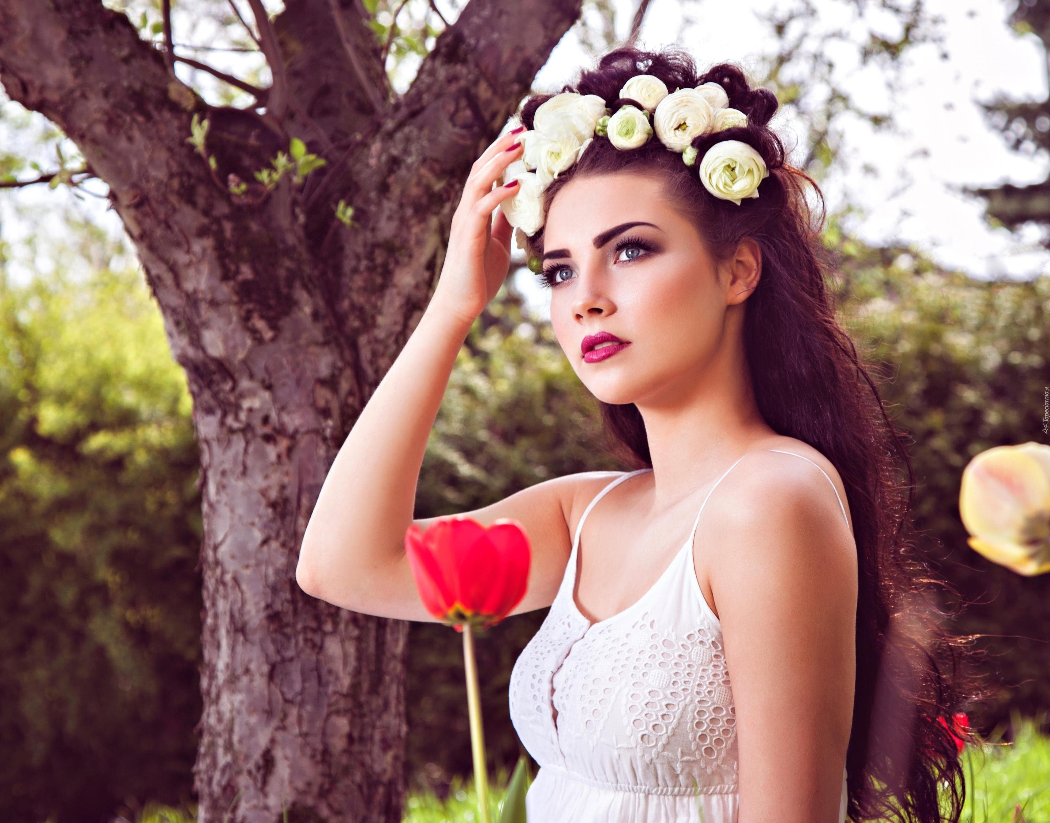 Edytor tapety: Kobieta, Makijaż, Kwiaty, Drzewo