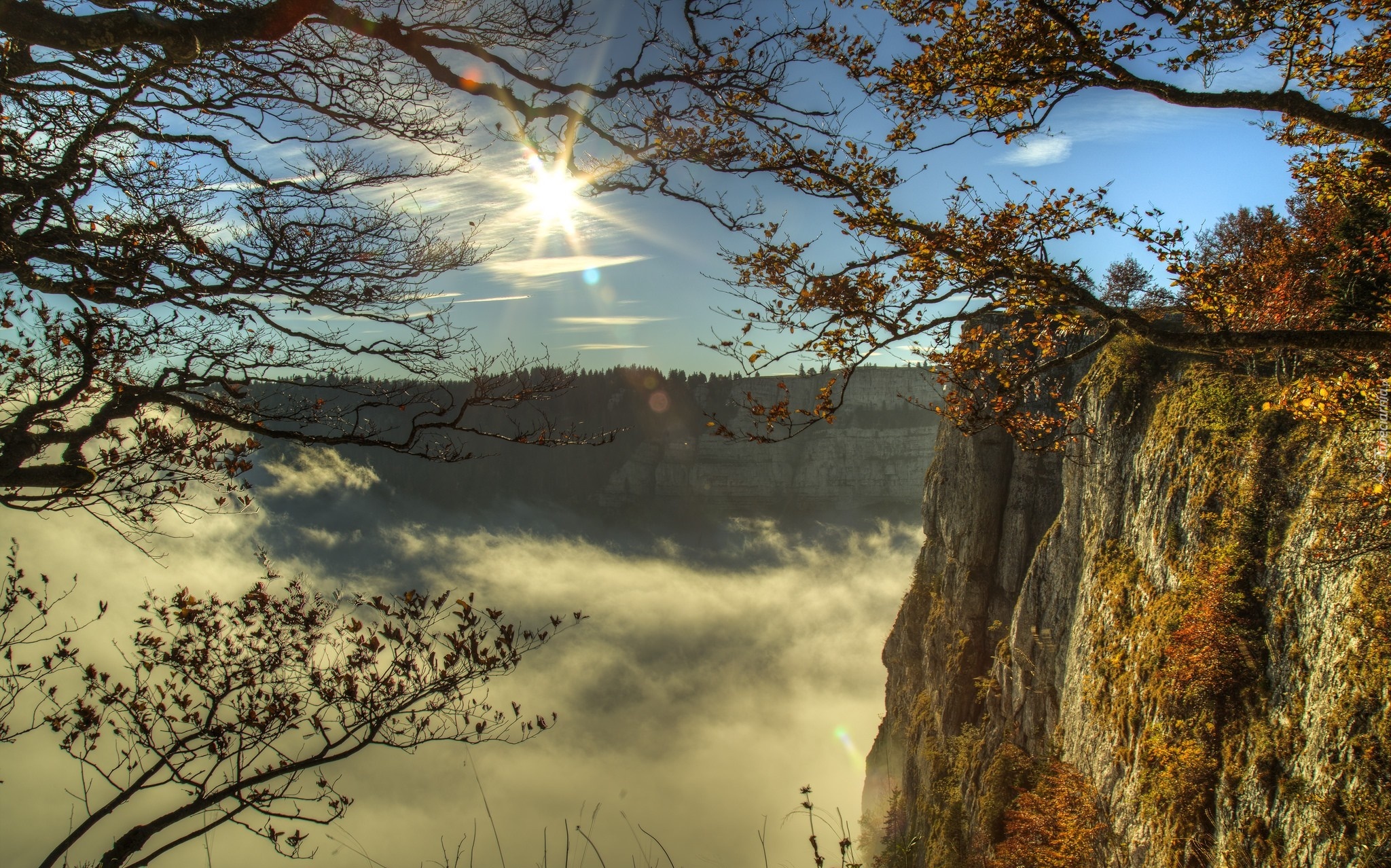 Edytor tapety: Skała, Las, Mgła, Promienie, Słońca