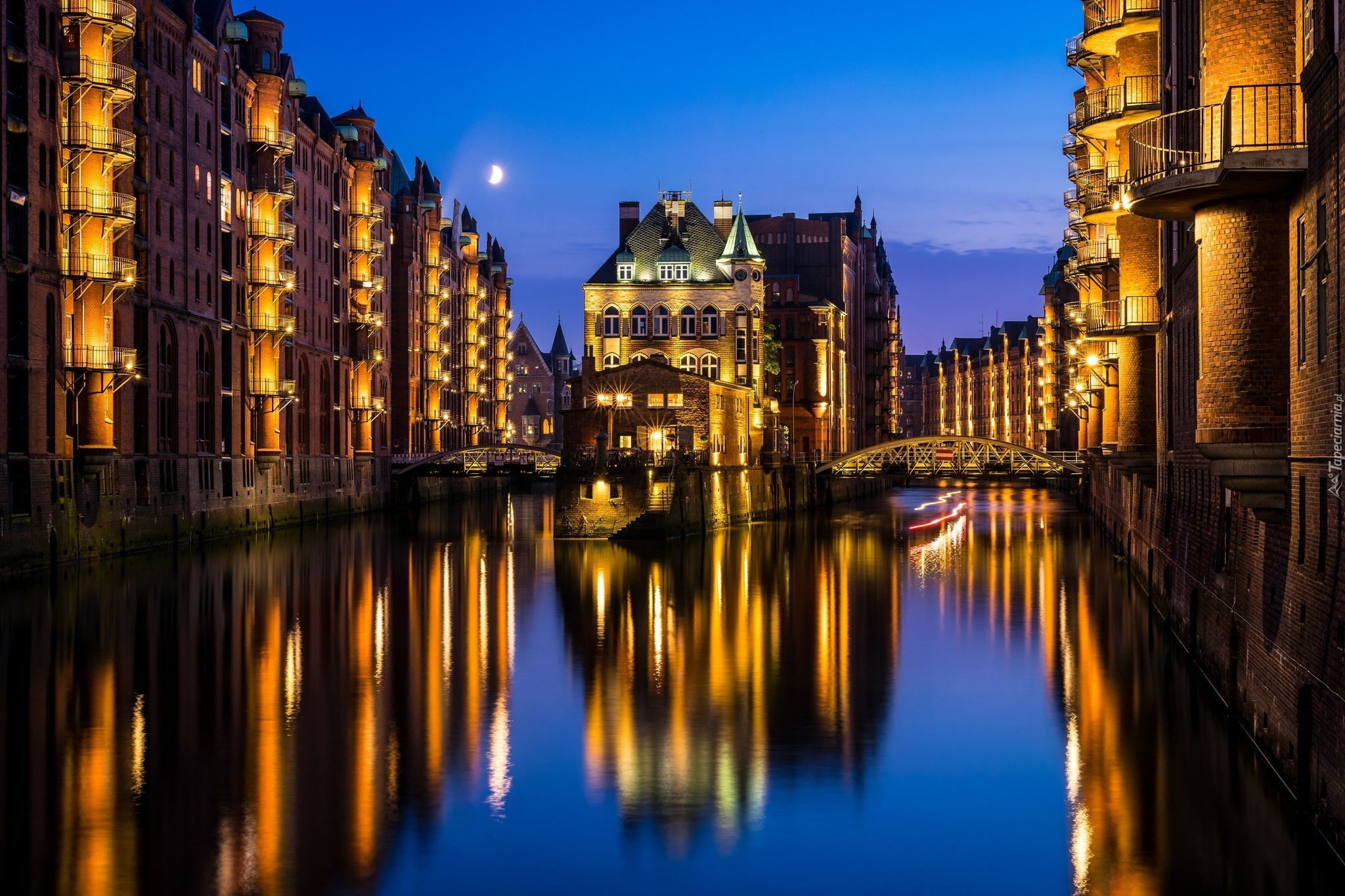 Edytor tapety: Budynki, Rzeka, Miasto Nocą
