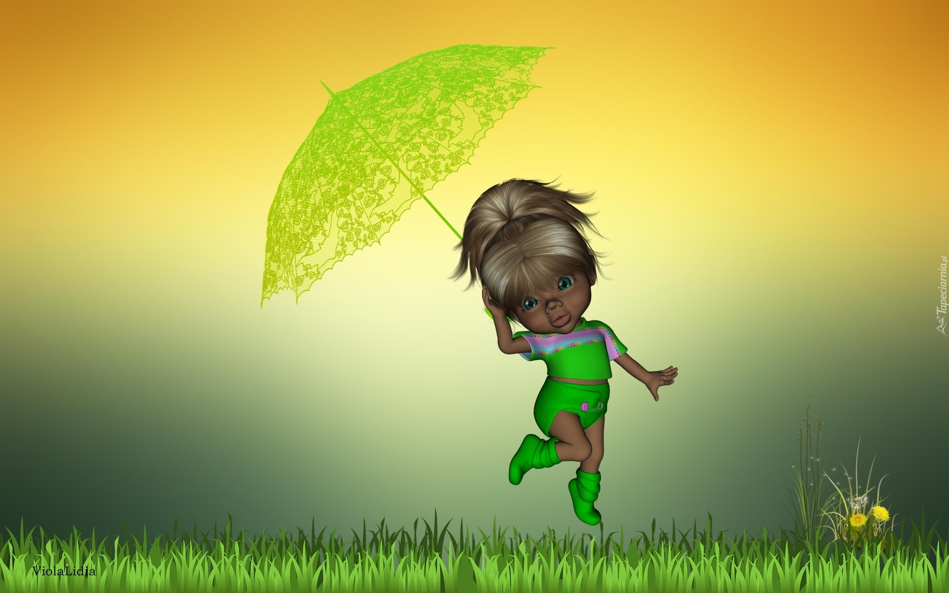 Edytor tapety: Grafika, Laleczka, Parasolka, Lato