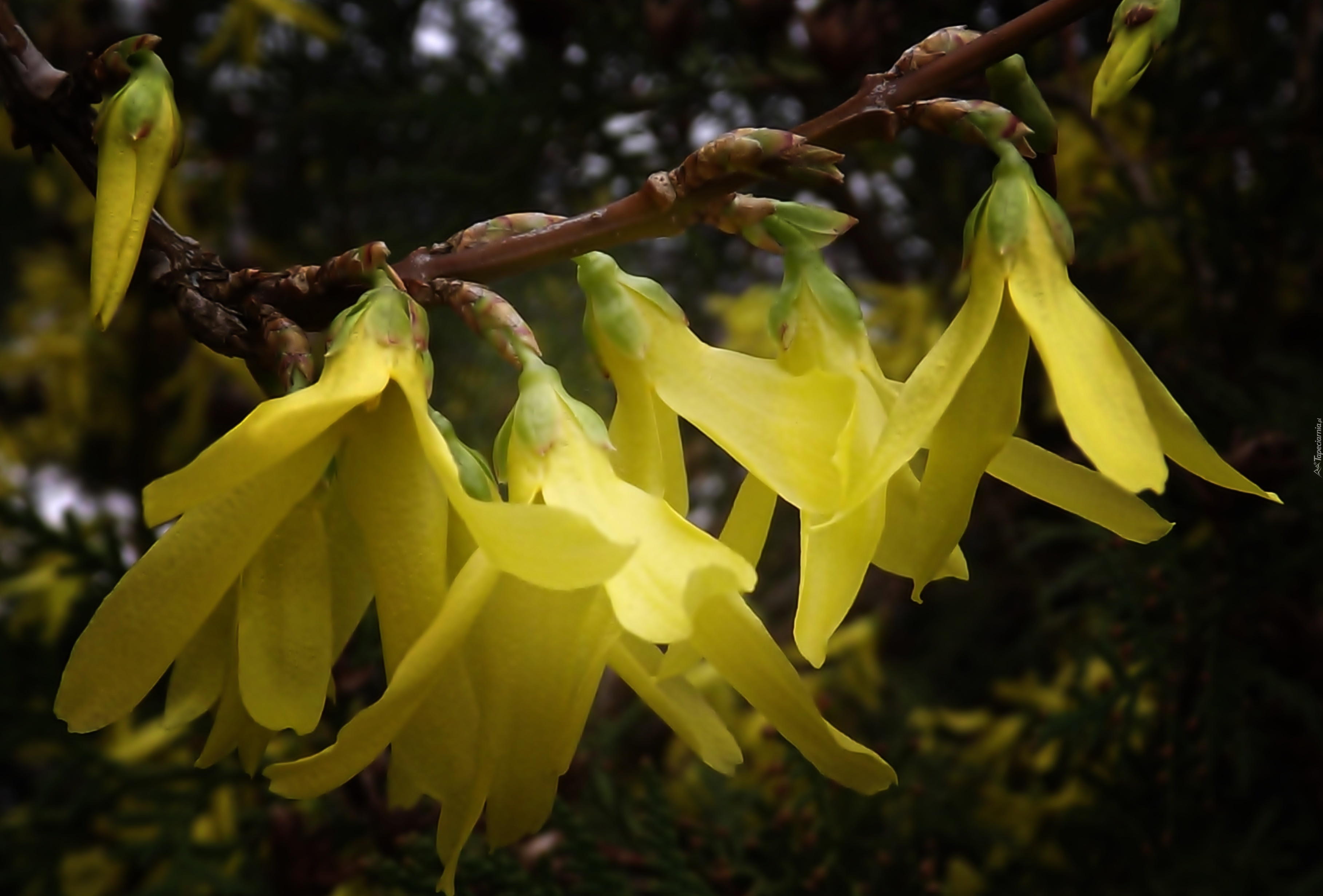 Edytor tapety: Kwitnąca, Gałązka, Forsycji