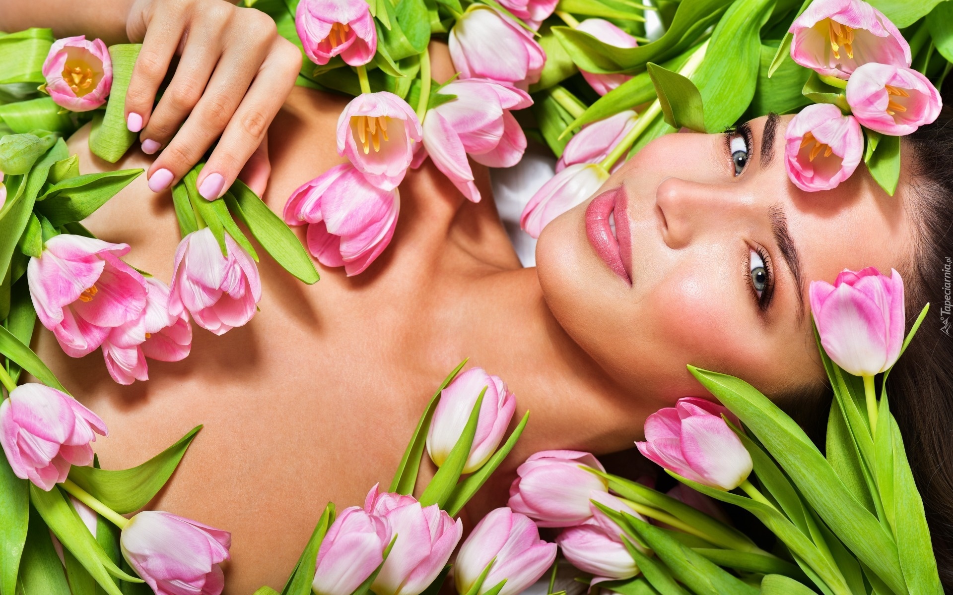 Edytor tapety: Dziewczyna, Tulipany