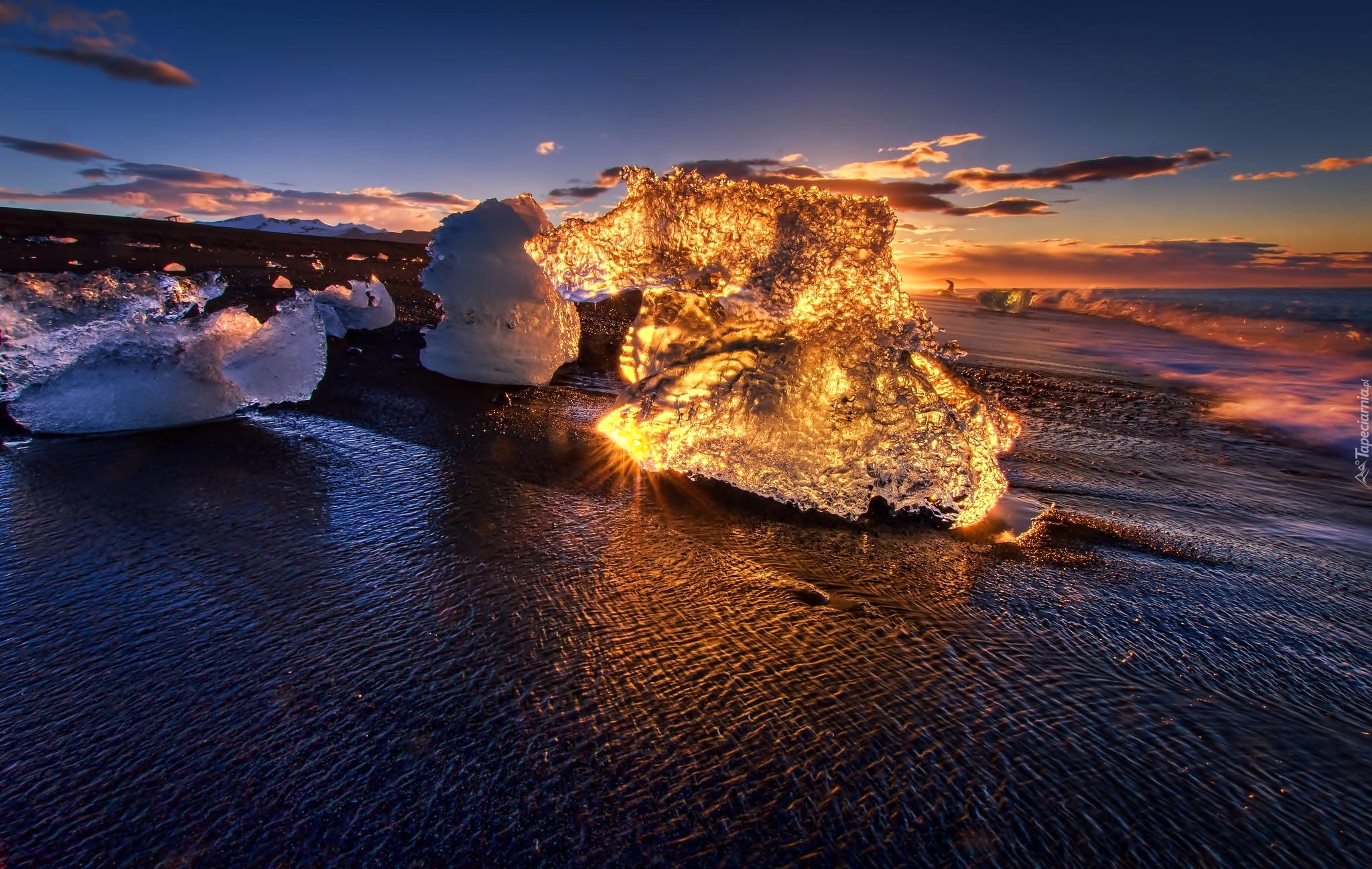 Edytor tapety: Morze, Wybrzeże, Lód, Chmury, Przebijające, Światło