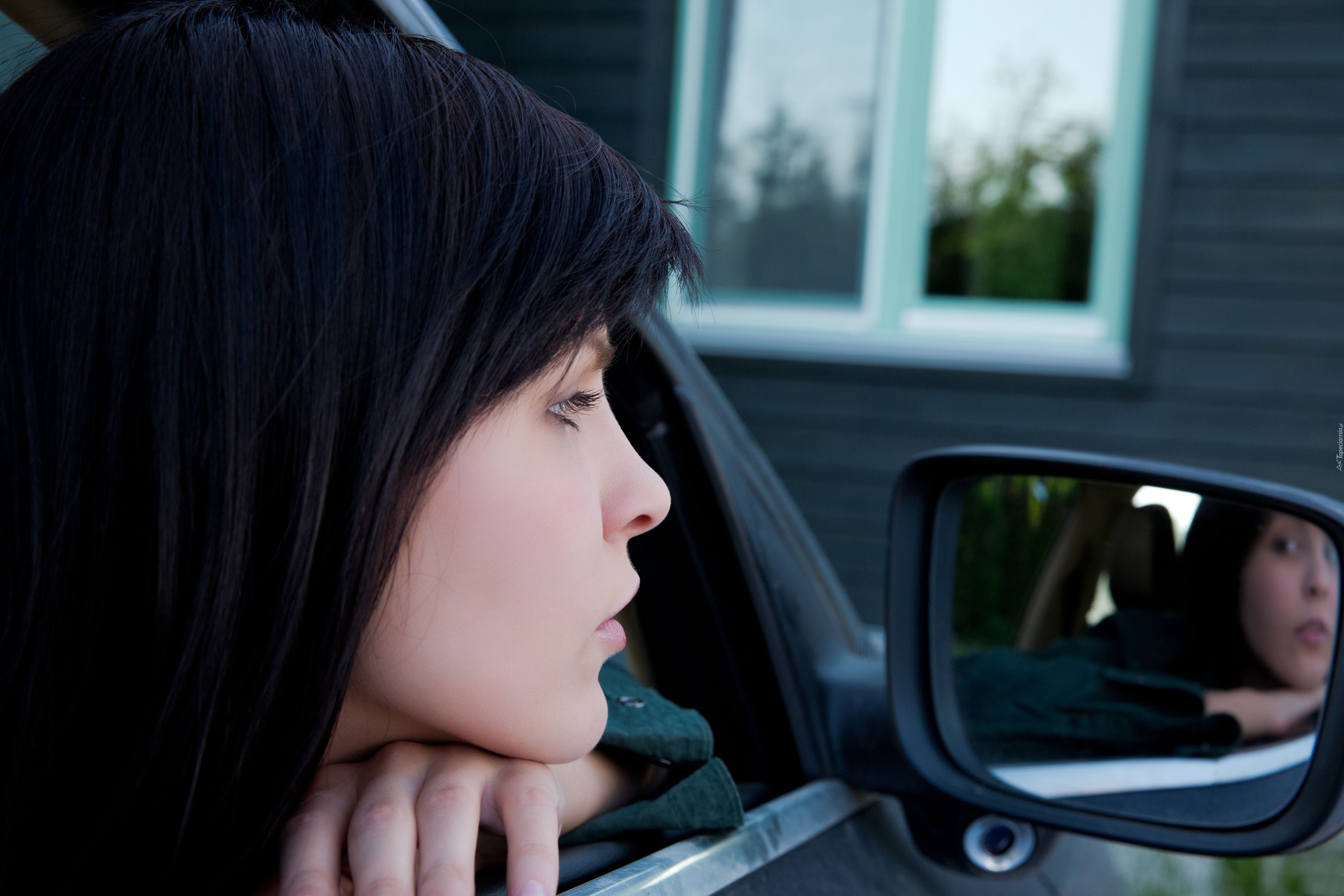 Edytor tapety: Kobieta, Samochód, Lusterko