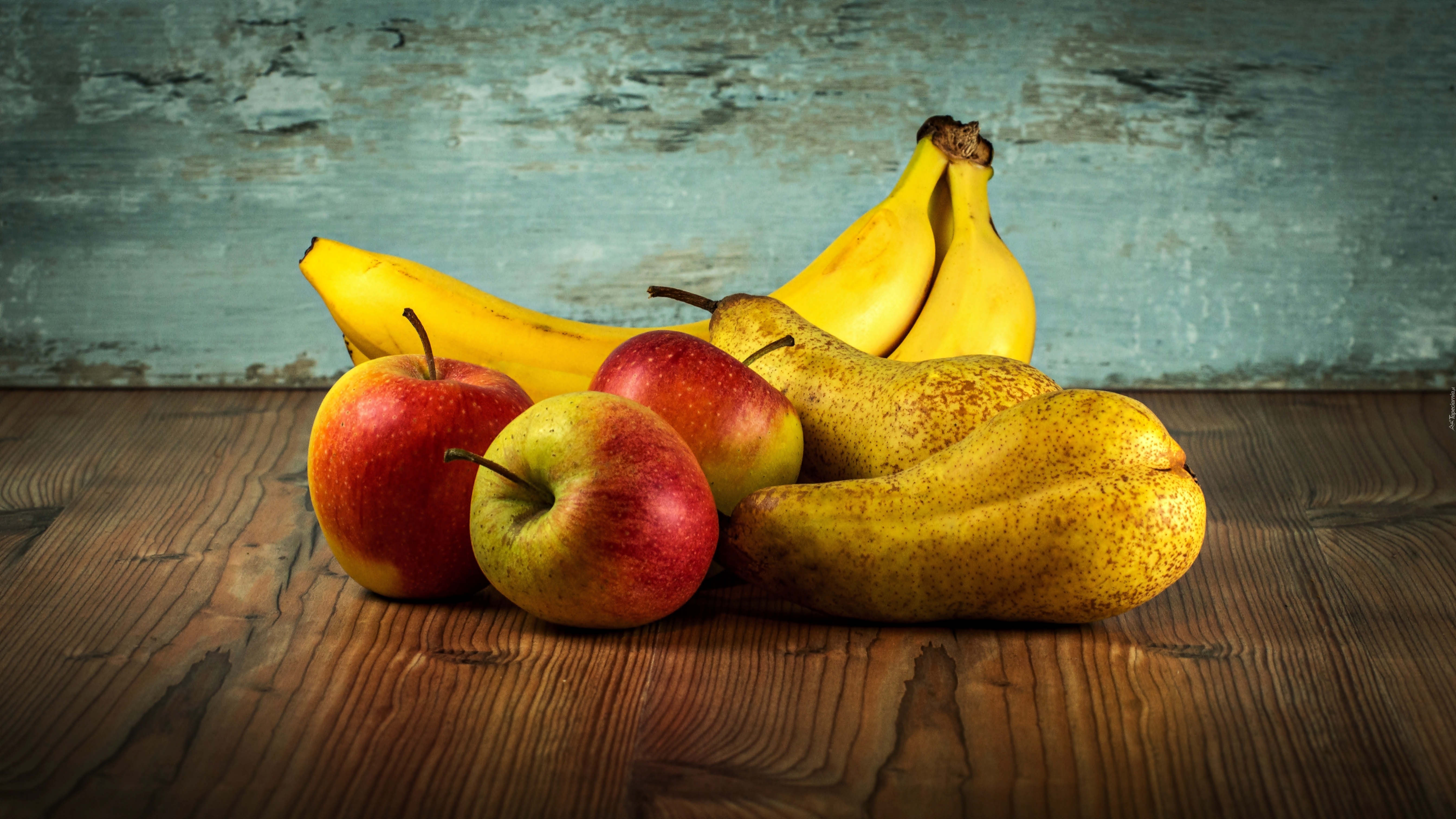 Edytor tapety: Kompozycja, Owoce, Banany, Jabłka, Gruszki