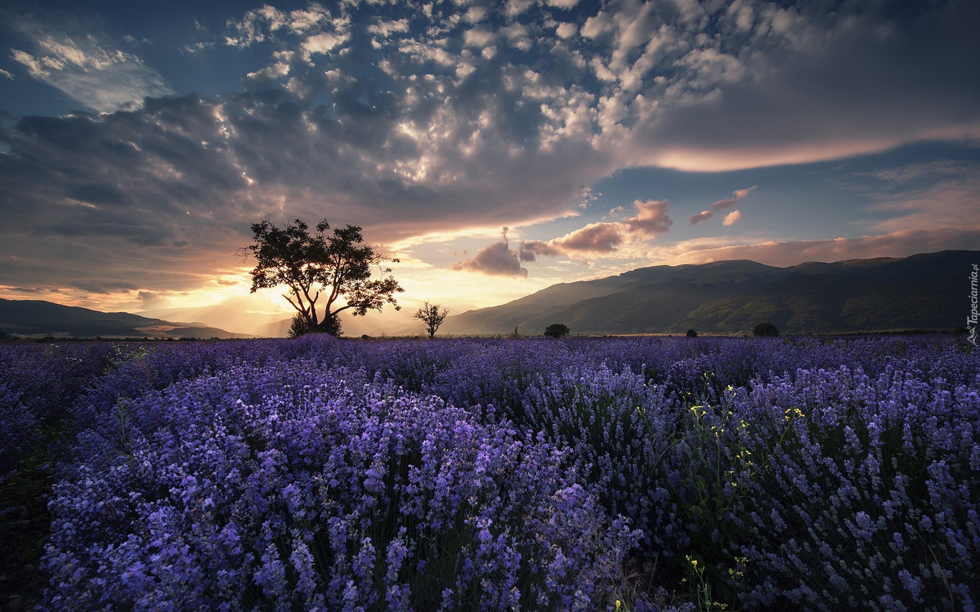 Edytor tapety: Lawenda, Chmury, Niebo, Drzewo