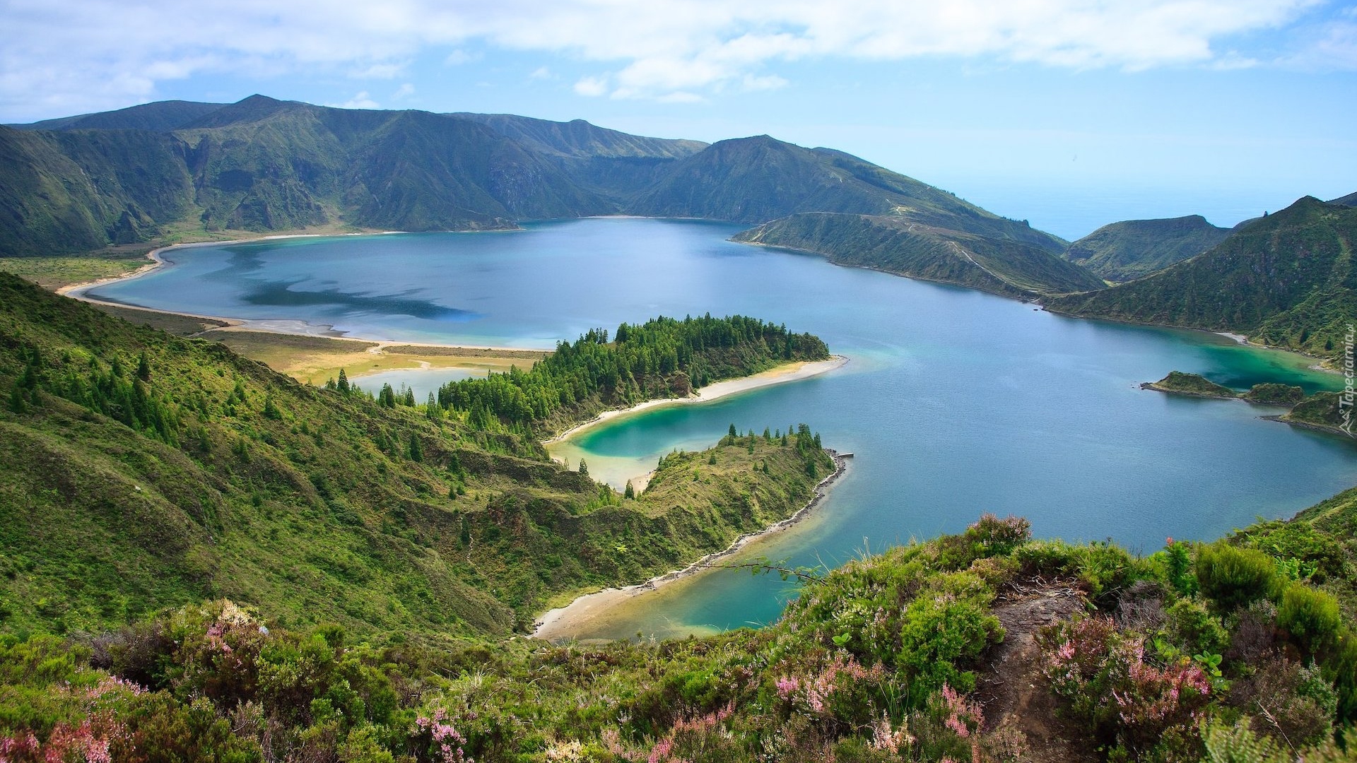 Edytor tapety: Portugalia, Jezioro, Lagoa de Fogo, Góry