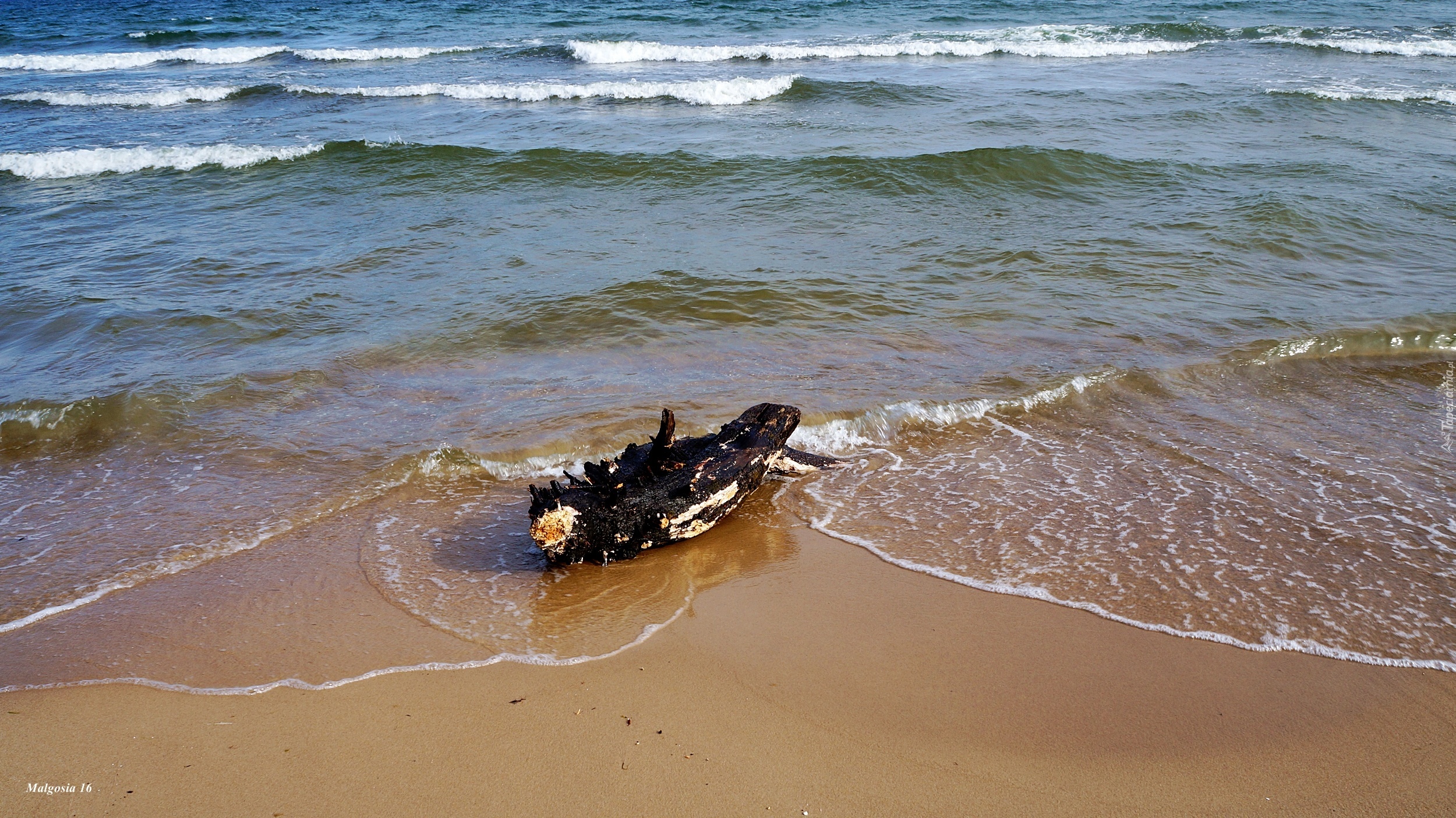 Edytor tapety: Morze, Bałtyk, Fale, Plaża, Kłoda