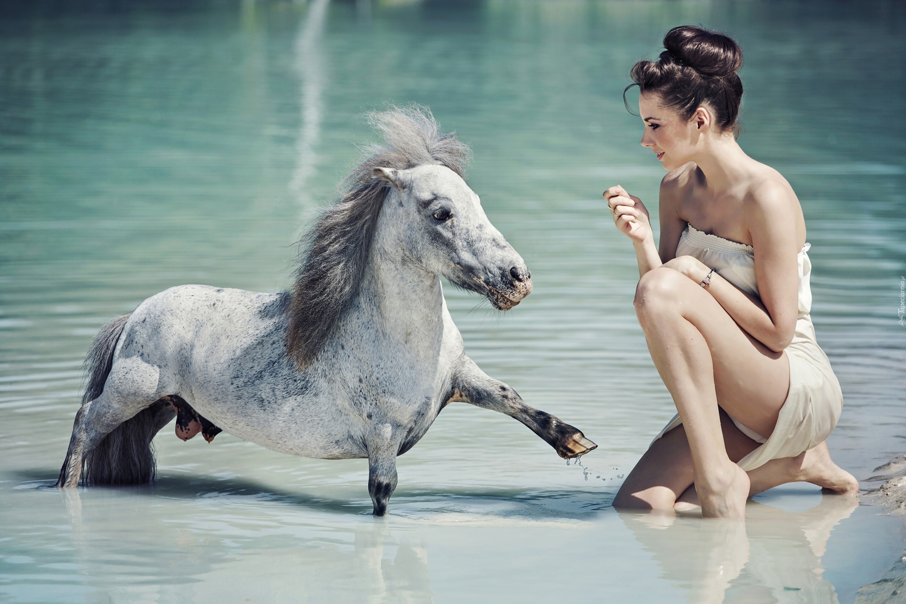 Edytor tapety: Kobieta, Konik, Woda