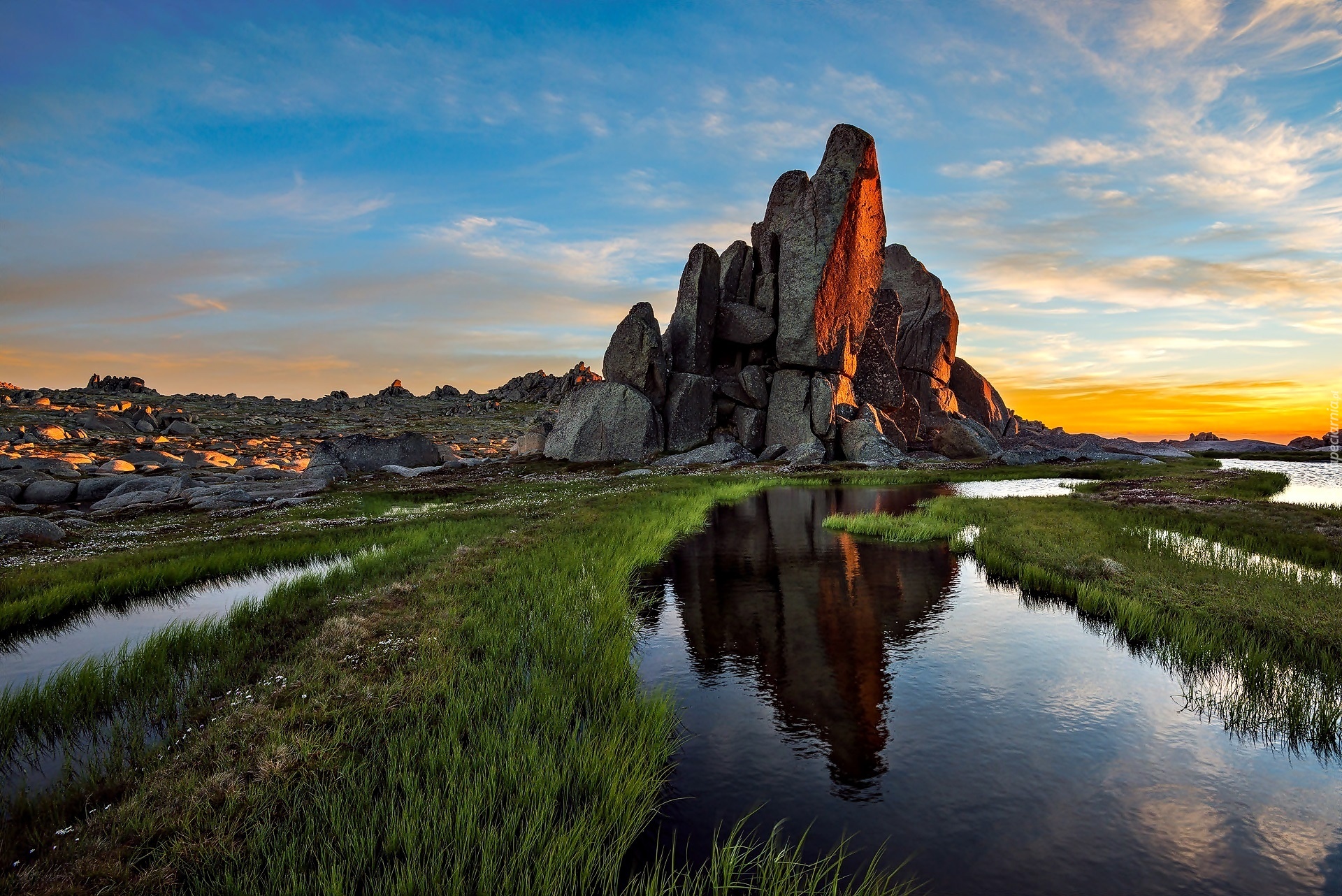 Edytor tapety: Rzeka, Skały, Kamienie, Trawa, Świt, Australia