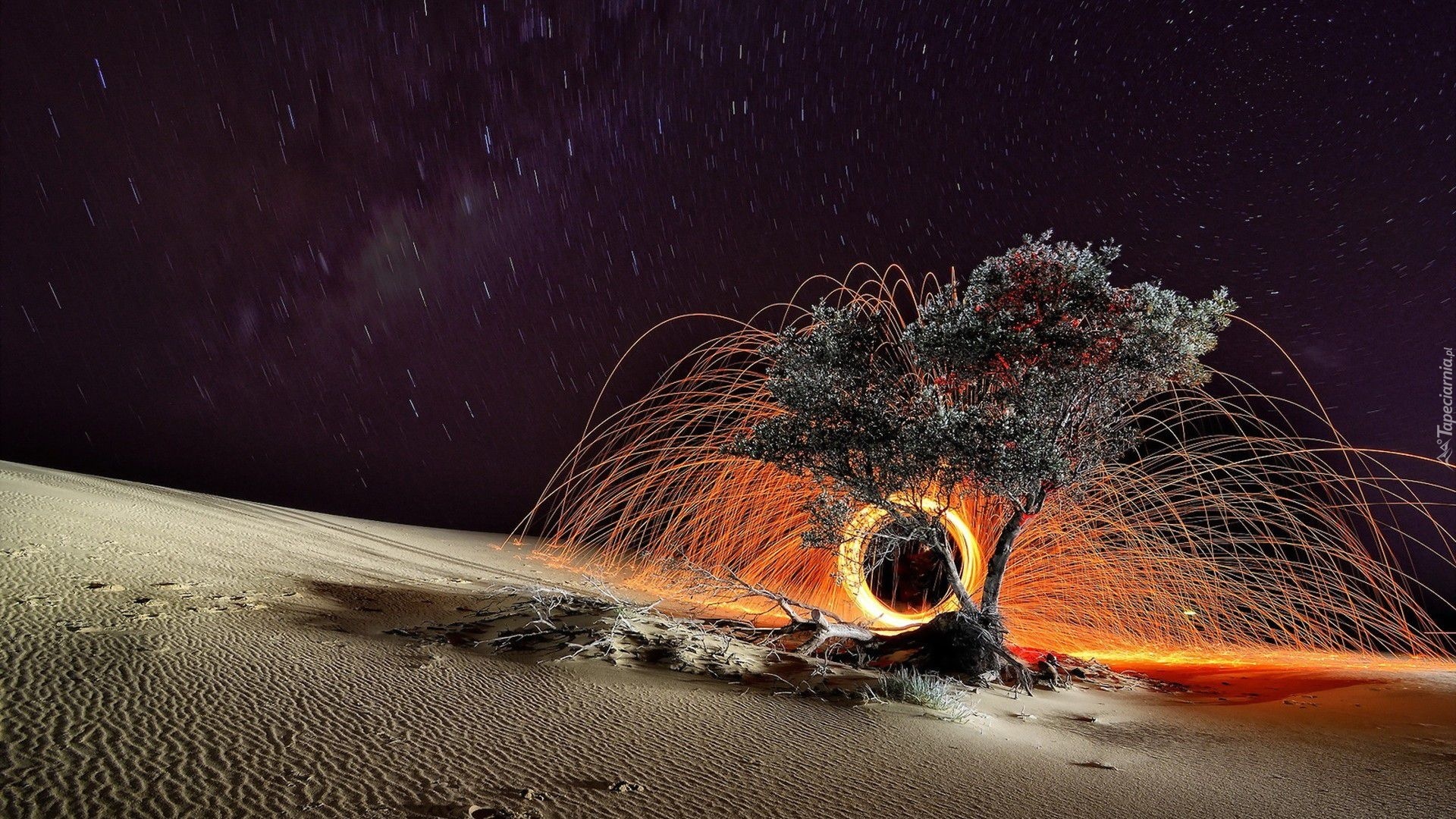 Edytor tapety: Pustynia, Piasek, Drzewo, Noc