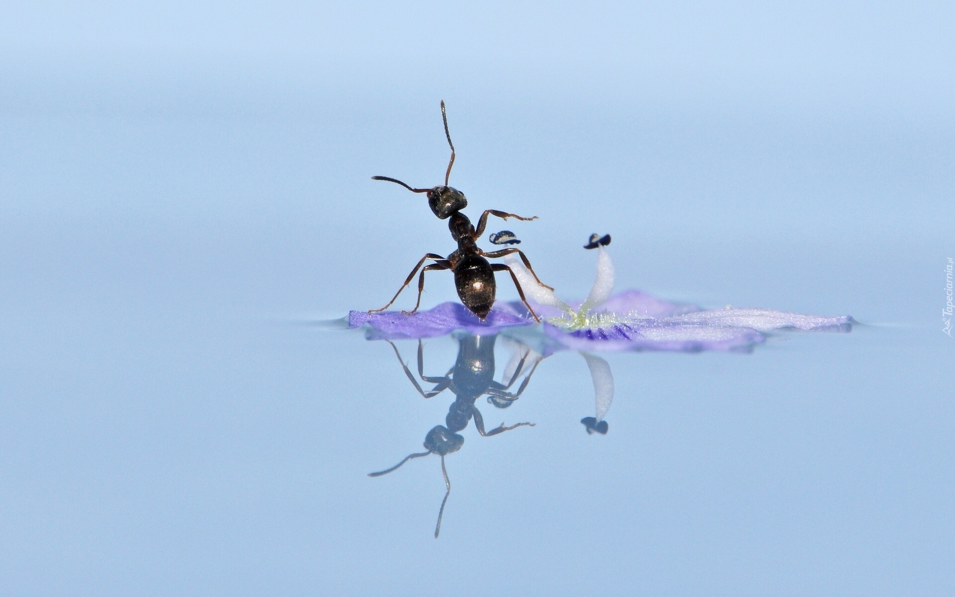 Edytor tapety: Mrówka, Kwiat, Odbicie, Niebieskie, Tło