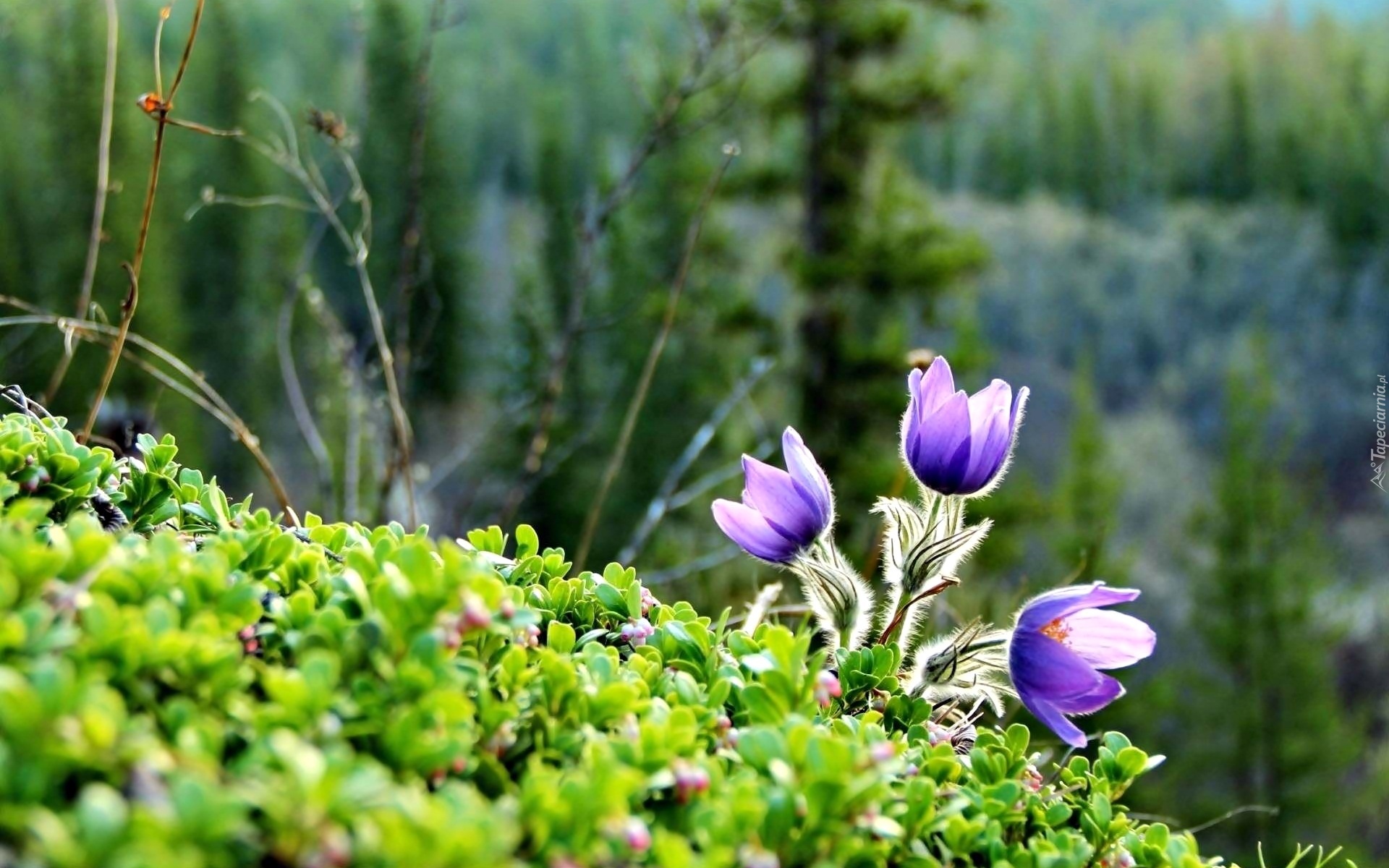 Edytor tapety: Wiosna, Las, Kwiaty, Fioletowe, Sasanki