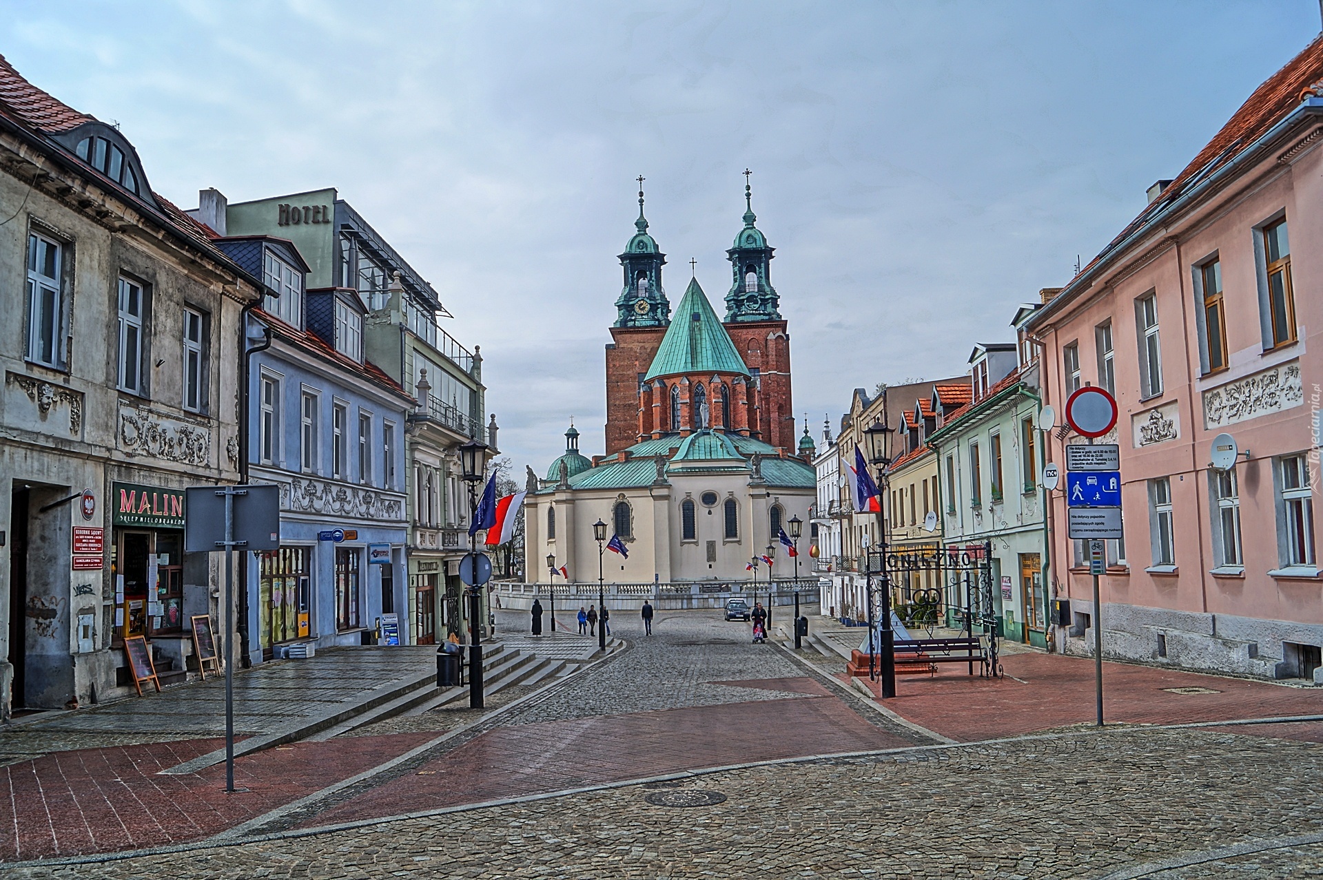 Edytor tapety: Gniezno, Katedra, Kamienice