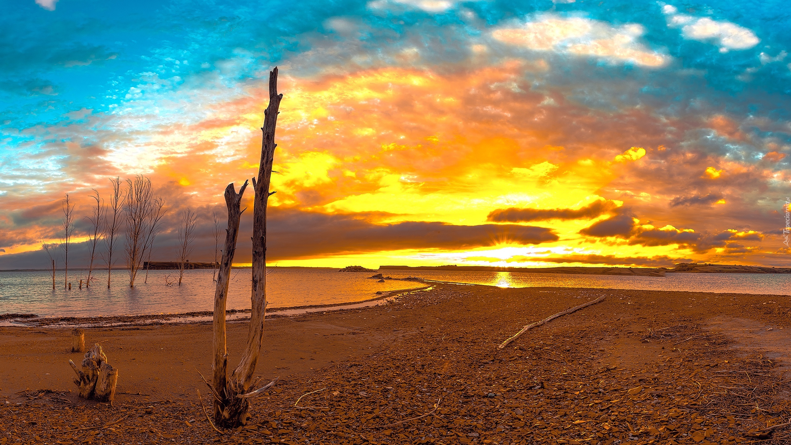 Edytor tapety: Zachód słońca, Niebo, Jezioro