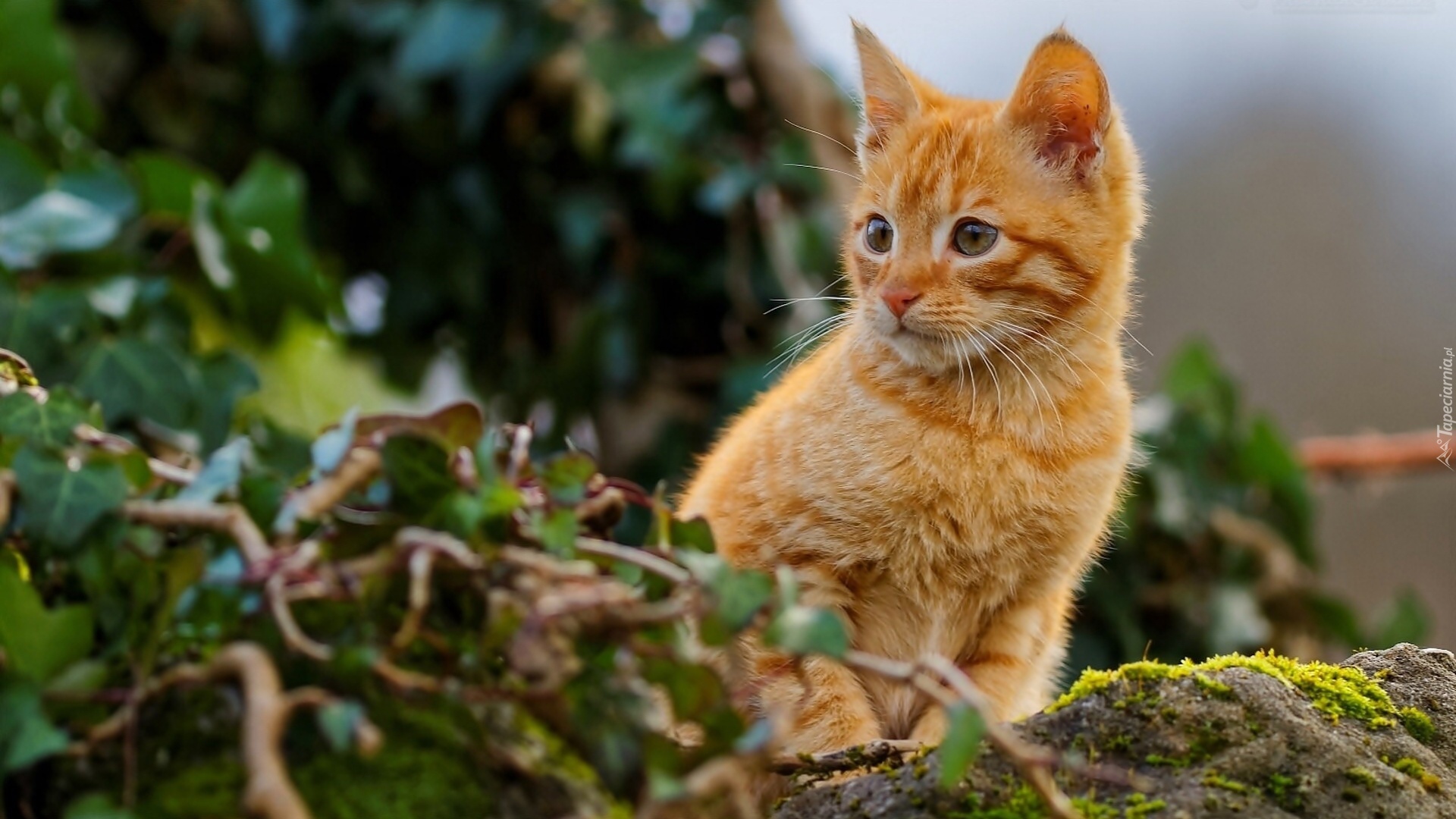 Edytor tapety: Rudy, Kotek, Skała, Rośliny
