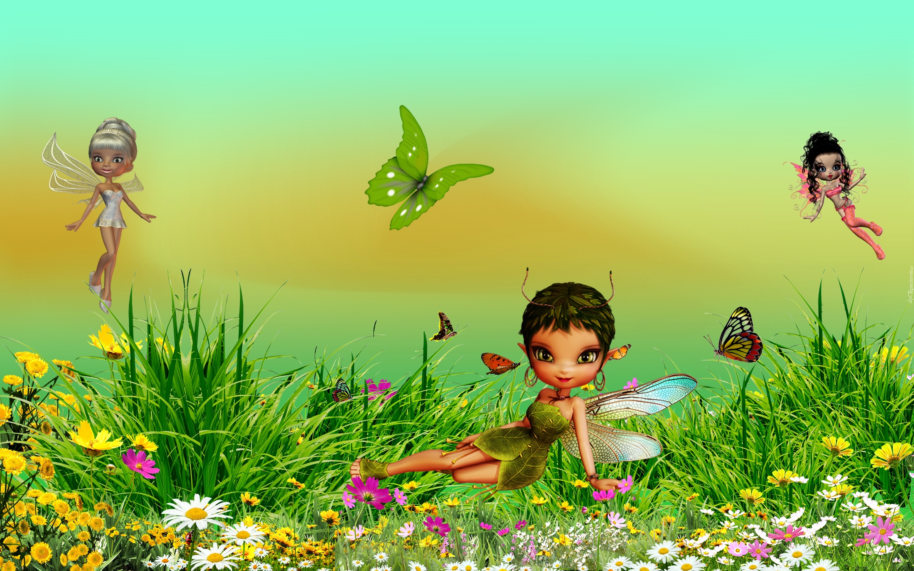 Edytor tapety: Motylki, Łąka, Kwiaty