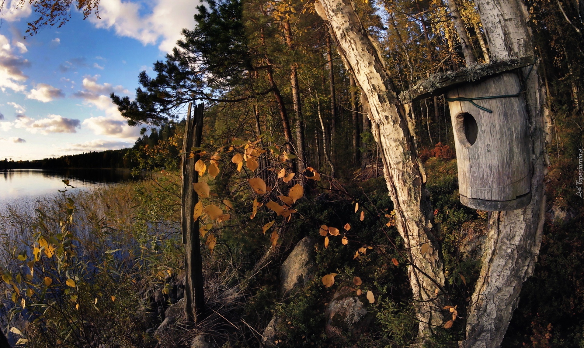 Edytor tapety: Las, Jezioro, Karmnik