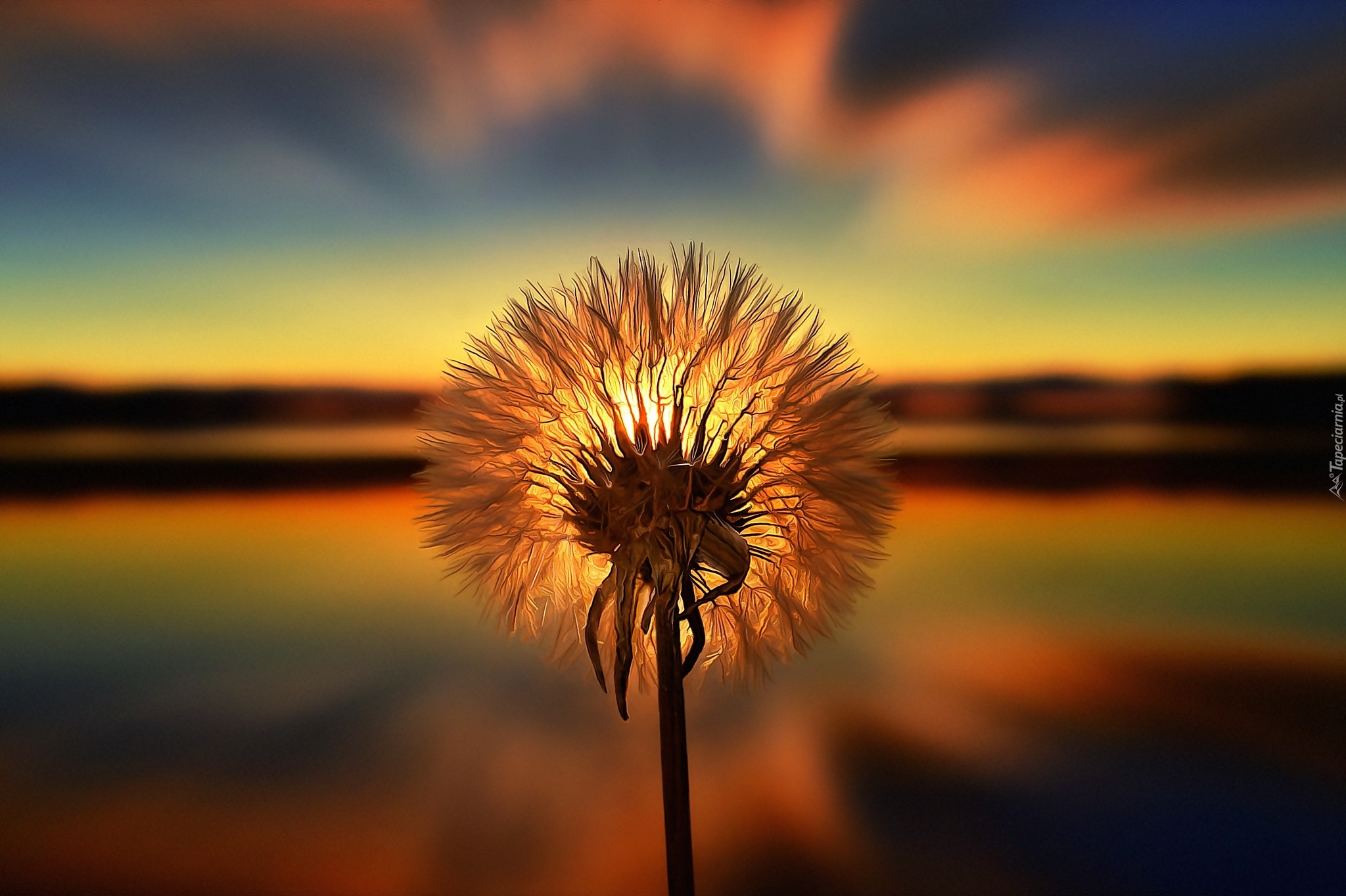 Edytor tapety: Mniszek, Mlecz, Nasiona, Zachód, Słońca