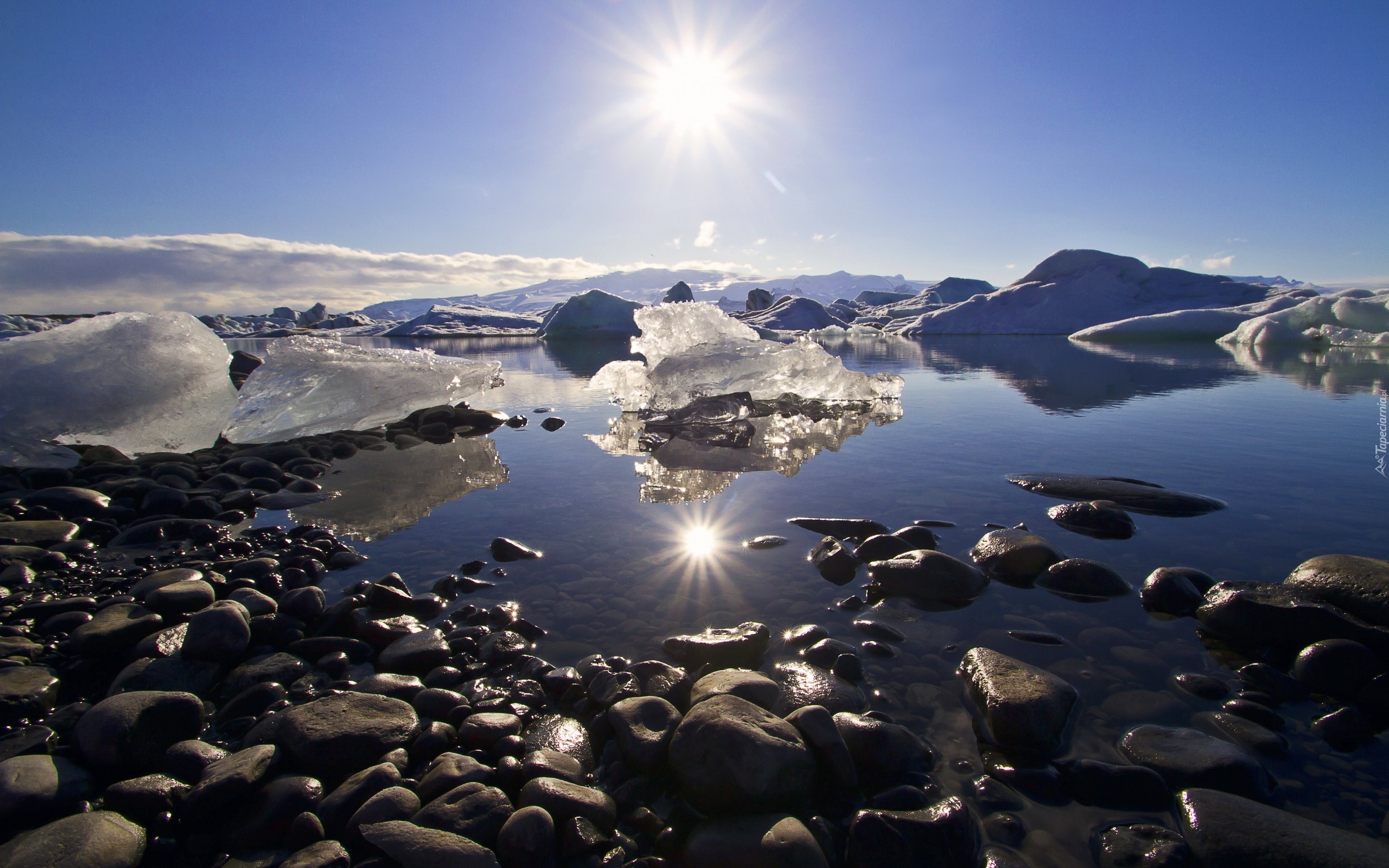 Edytor tapety: Jezioro, Kamienie, Słońce