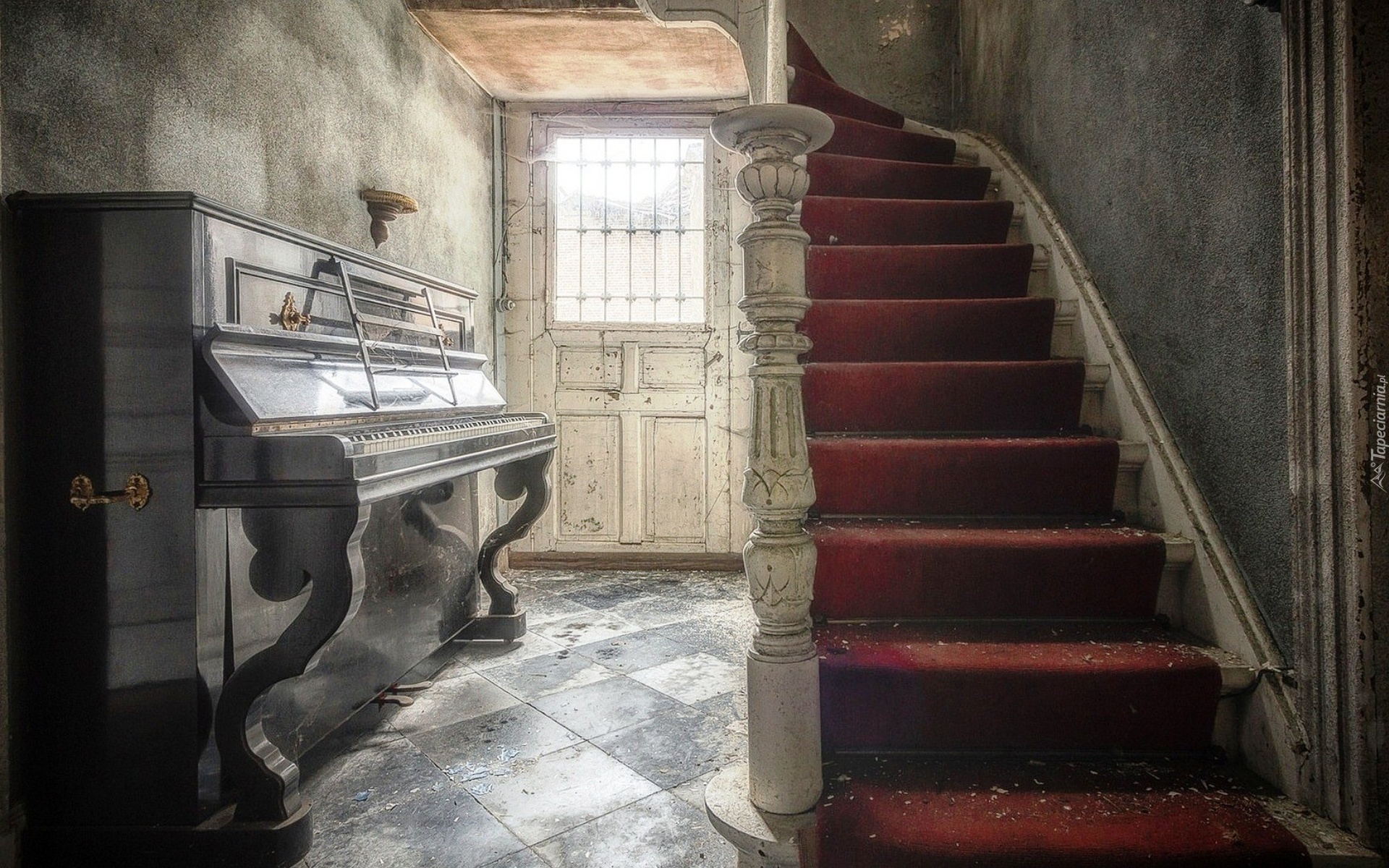 Edytor tapety: Zaniedbany, Korytarz, Klatka schodowa, Schody, Drzwi, Pianino