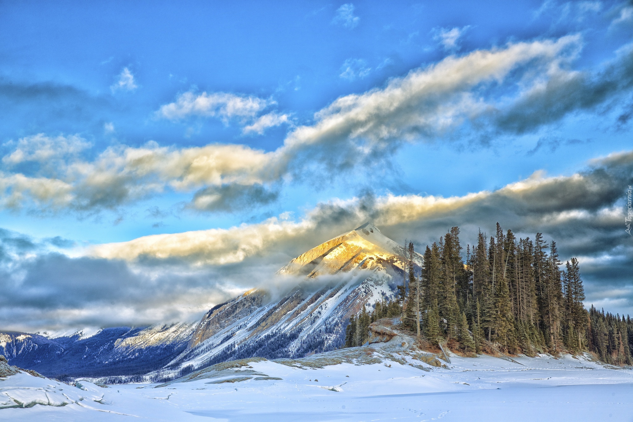 Edytor tapety: Niebo, Chmury, Zima, Góry, Las