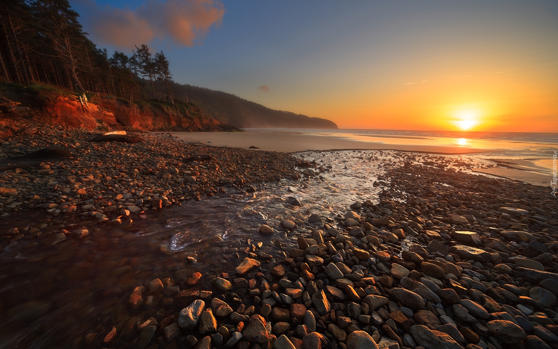 Edytor tapety: Morze, Zachód słońca, Kamienie