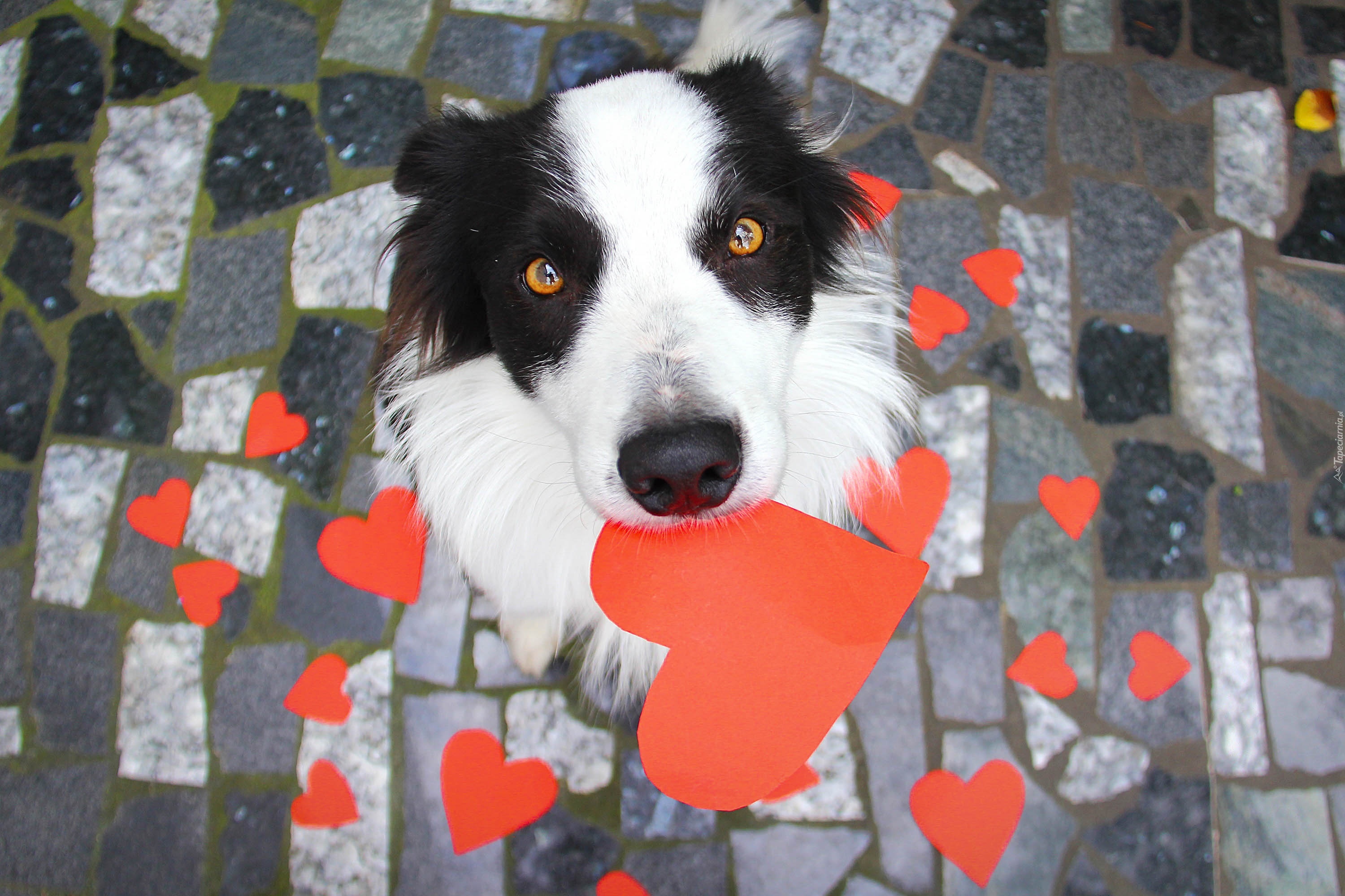Edytor tapety: Pies, Border Collie, Serduszka