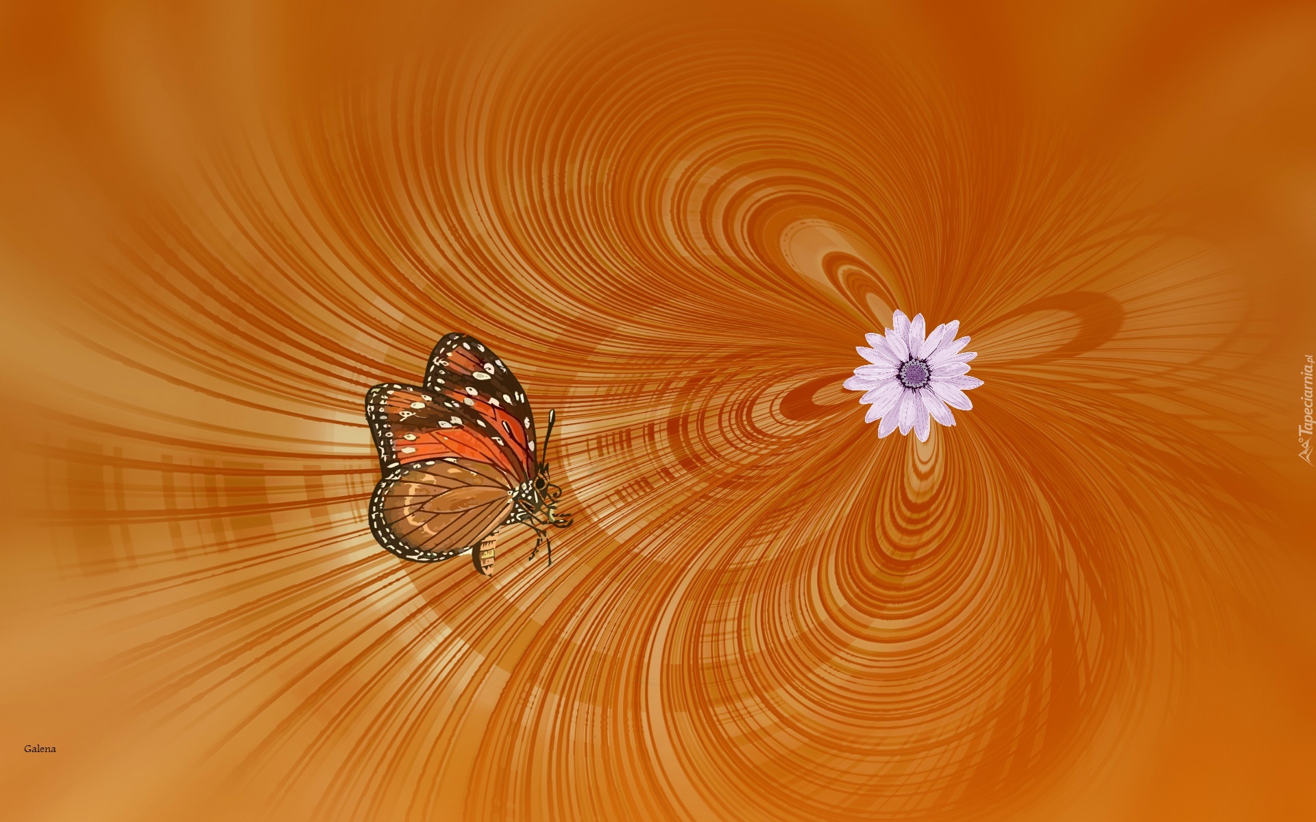 Edytor tapety: Motyl, Kwiat, Pomarańczowe, Tło, Grafika
