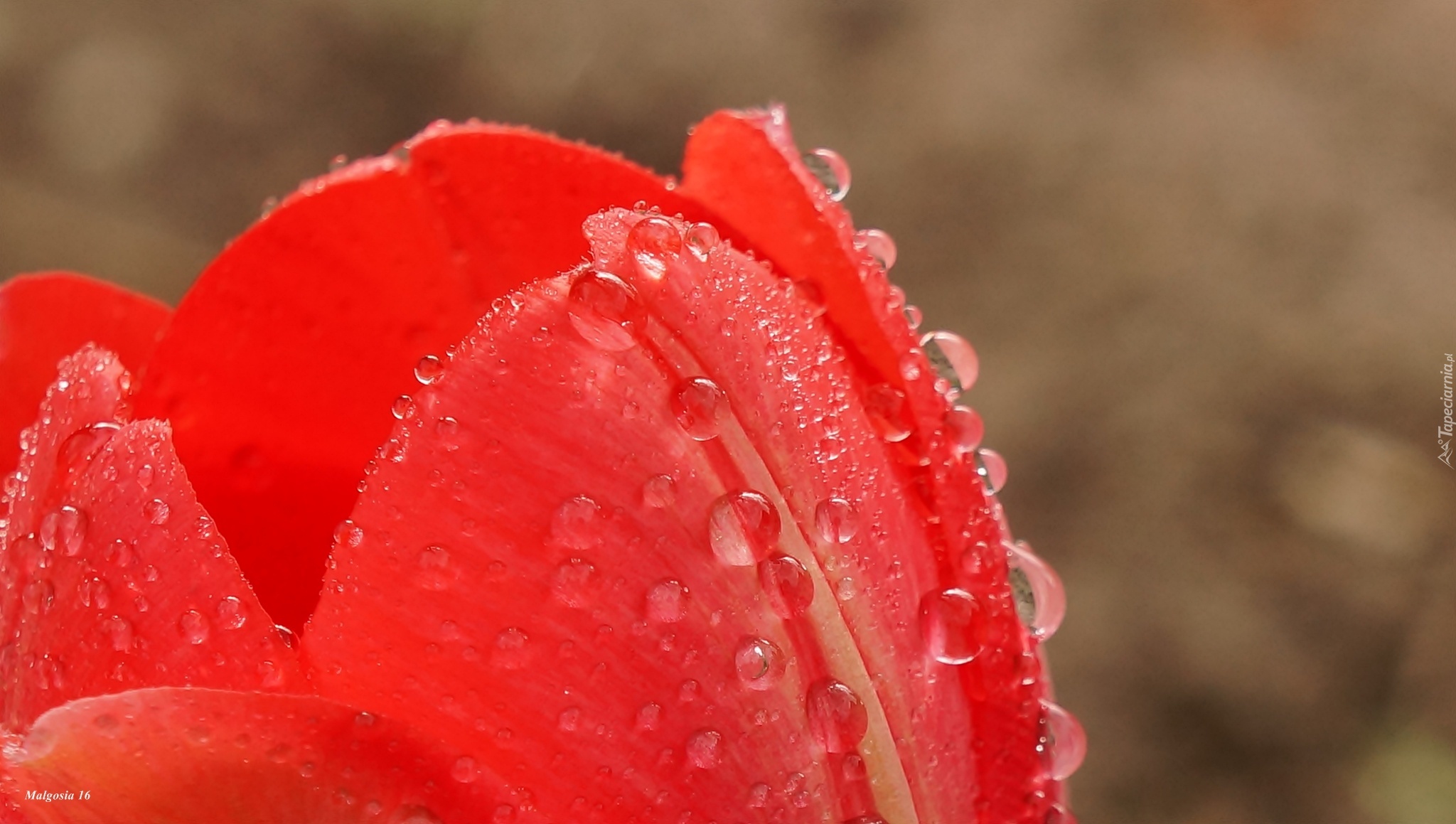 Edytor tapety: Tulipan, Czerwony, Płatki, Krople, Makro, Rosa