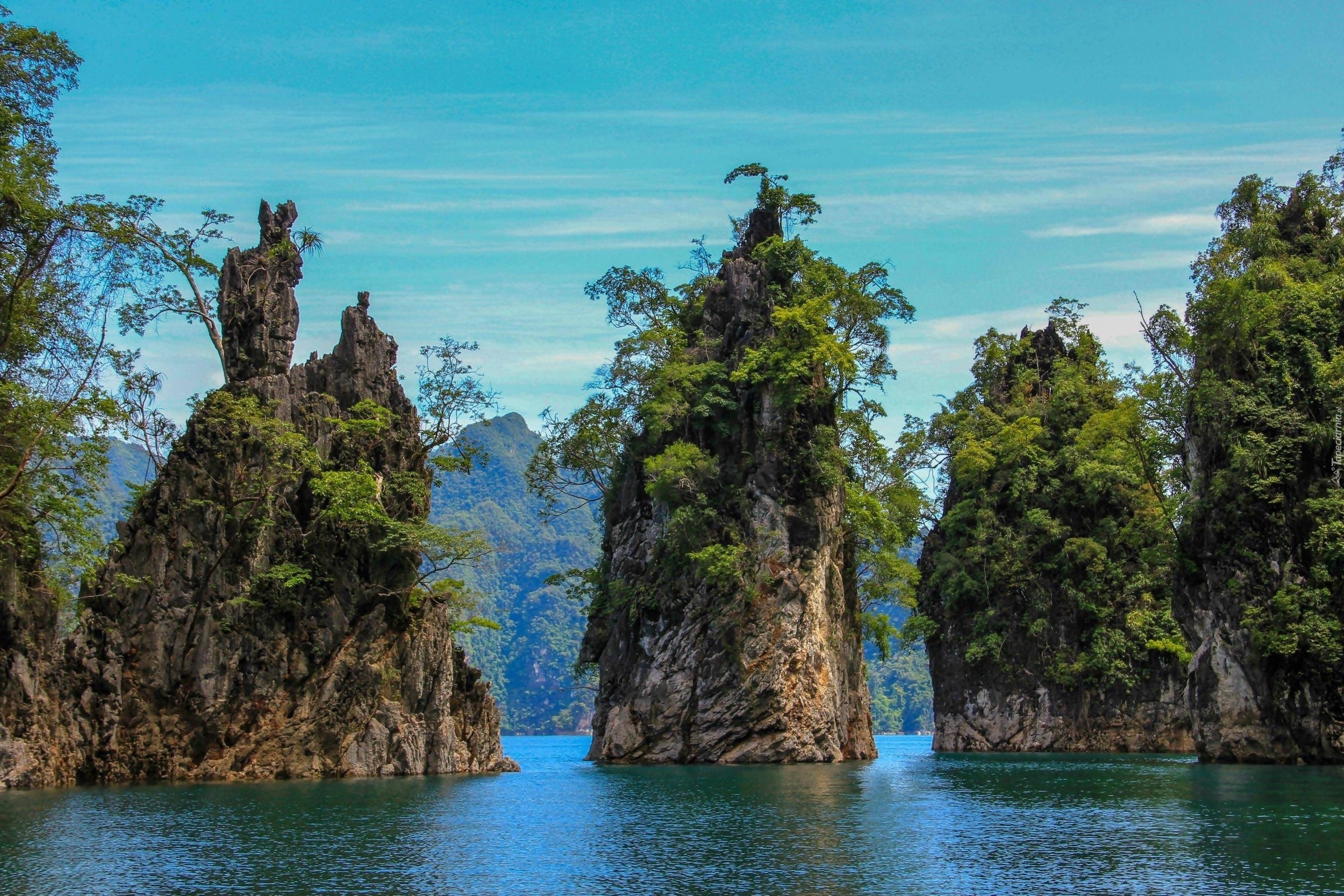 Edytor tapety: Park Narodowy, Skały, Porośnięte, Drzewami, Morze, Tajlandia