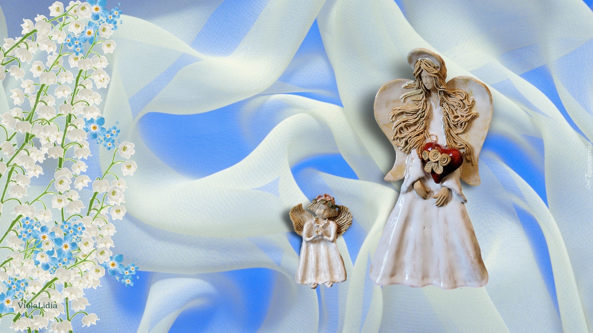 Edytor tapety: Grafika, Anioły, Aniołki, Kwiaty, Konwalie