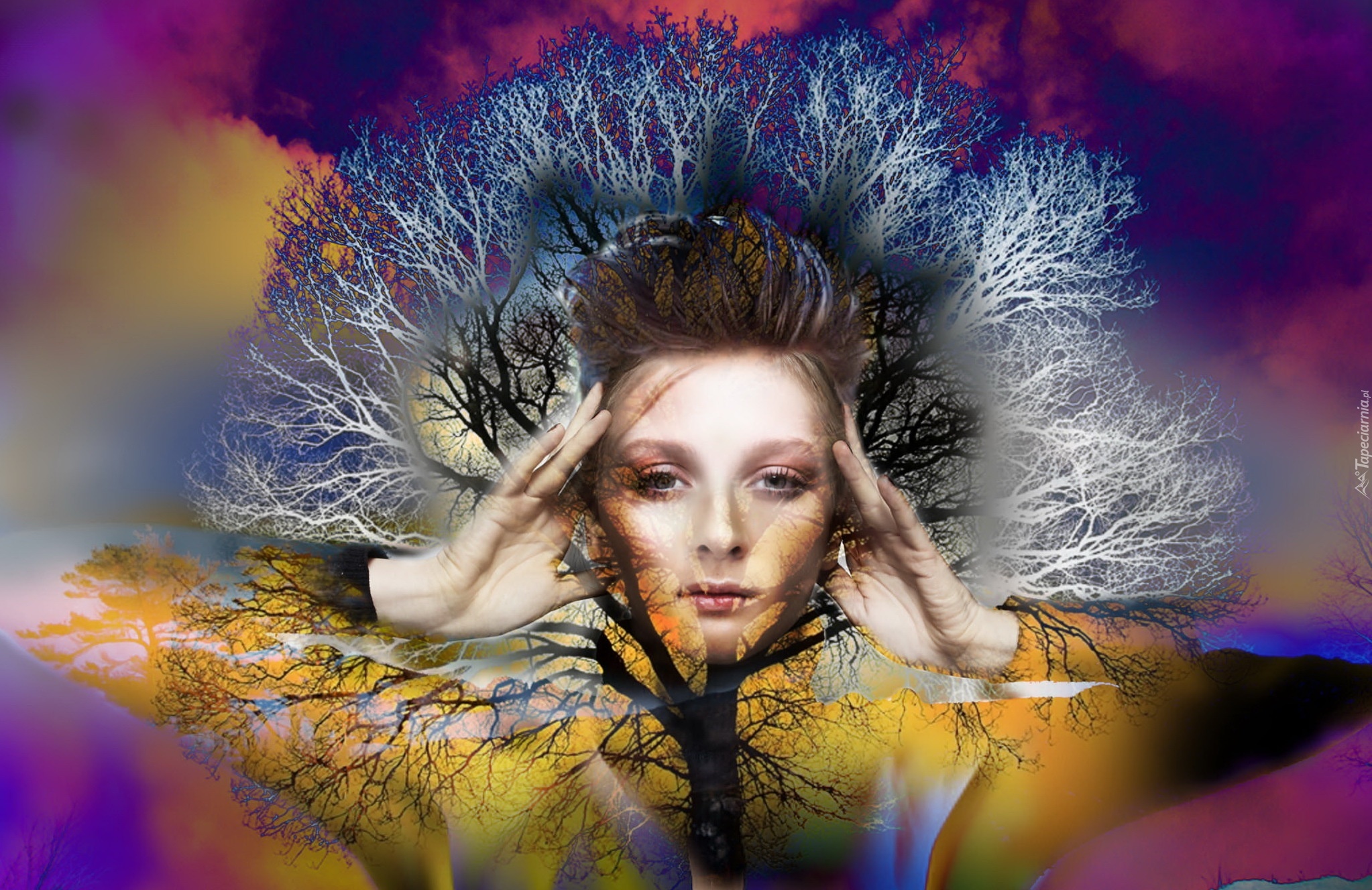 Edytor tapety: Dziewczyna, Dłonie, Drzewo