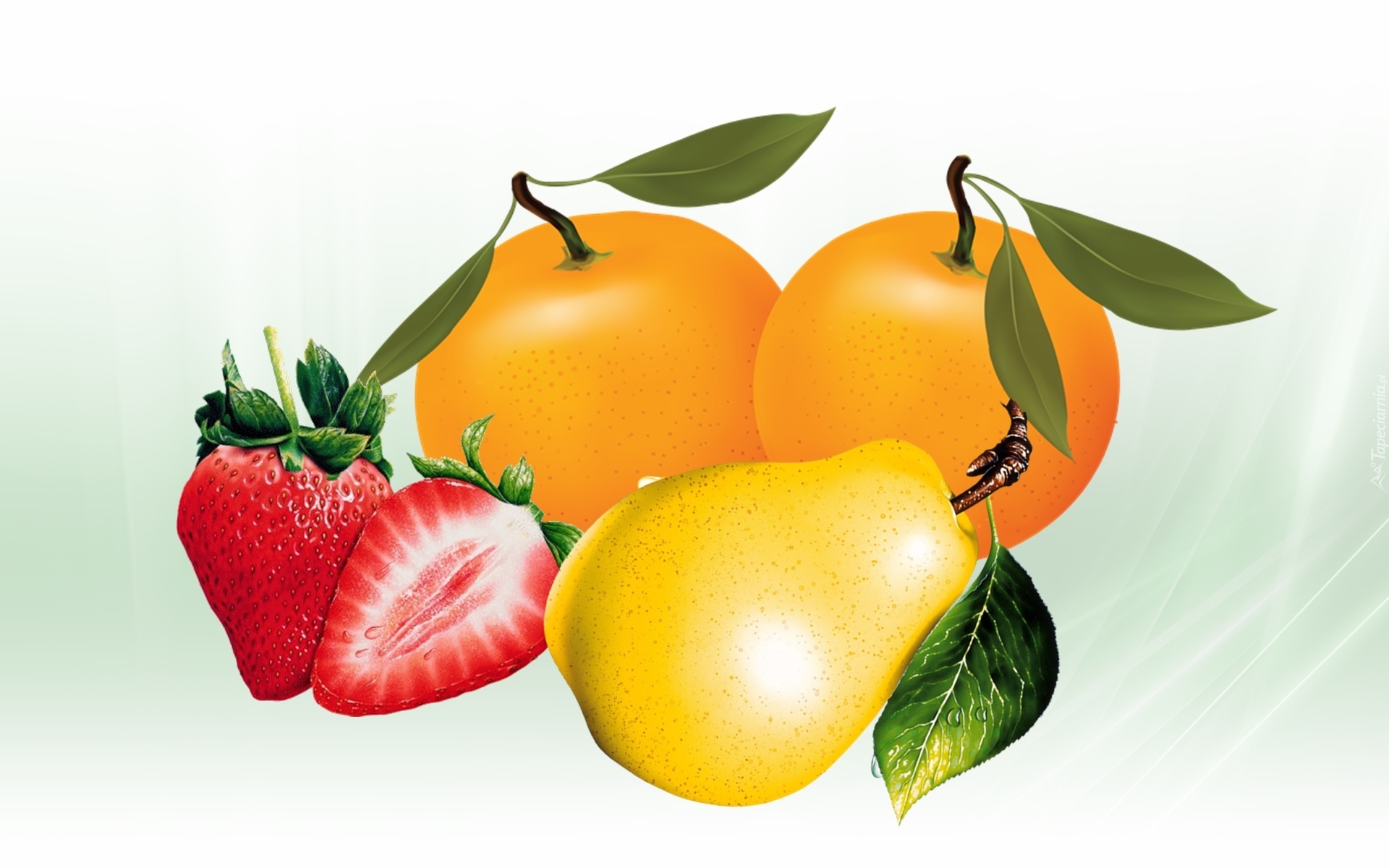 Edytor tapety: Owoce, Pomarańcze, Gruszka, Truskawki