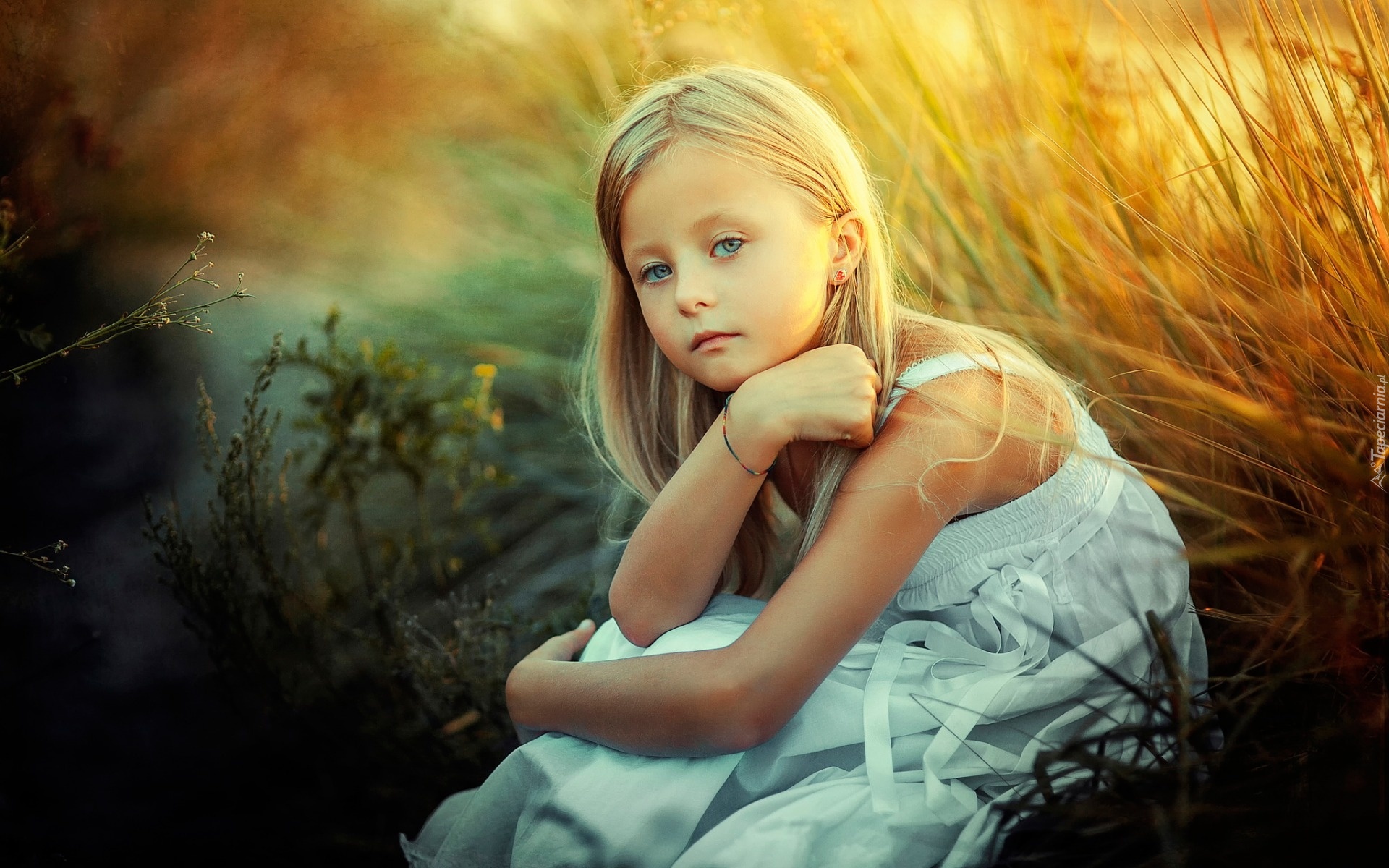 Edytor tapety: Dziewczynka, Blondynka, Trawy