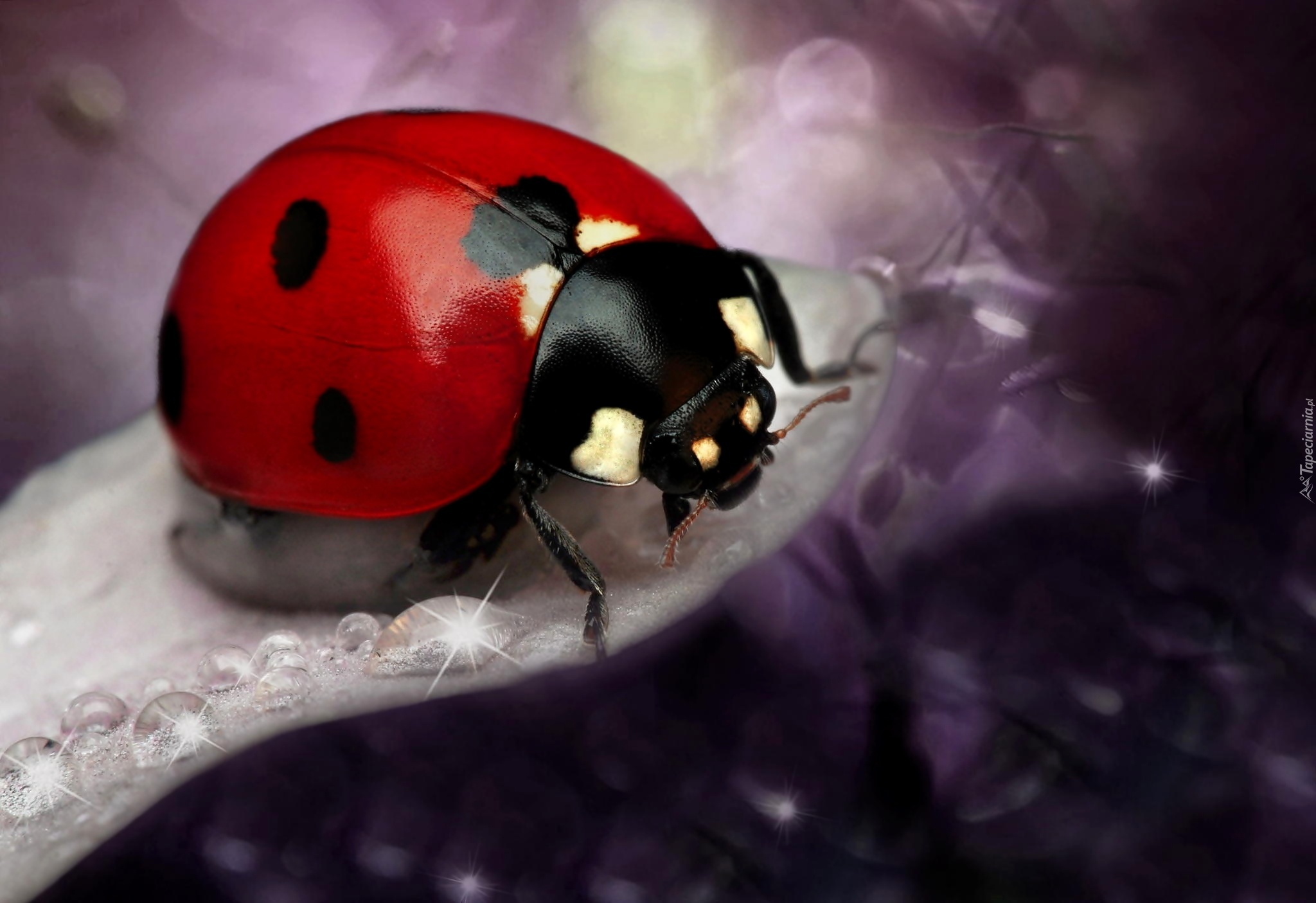 Edytor tapety: Biedronka, Płatek, Kwiatka, Krople