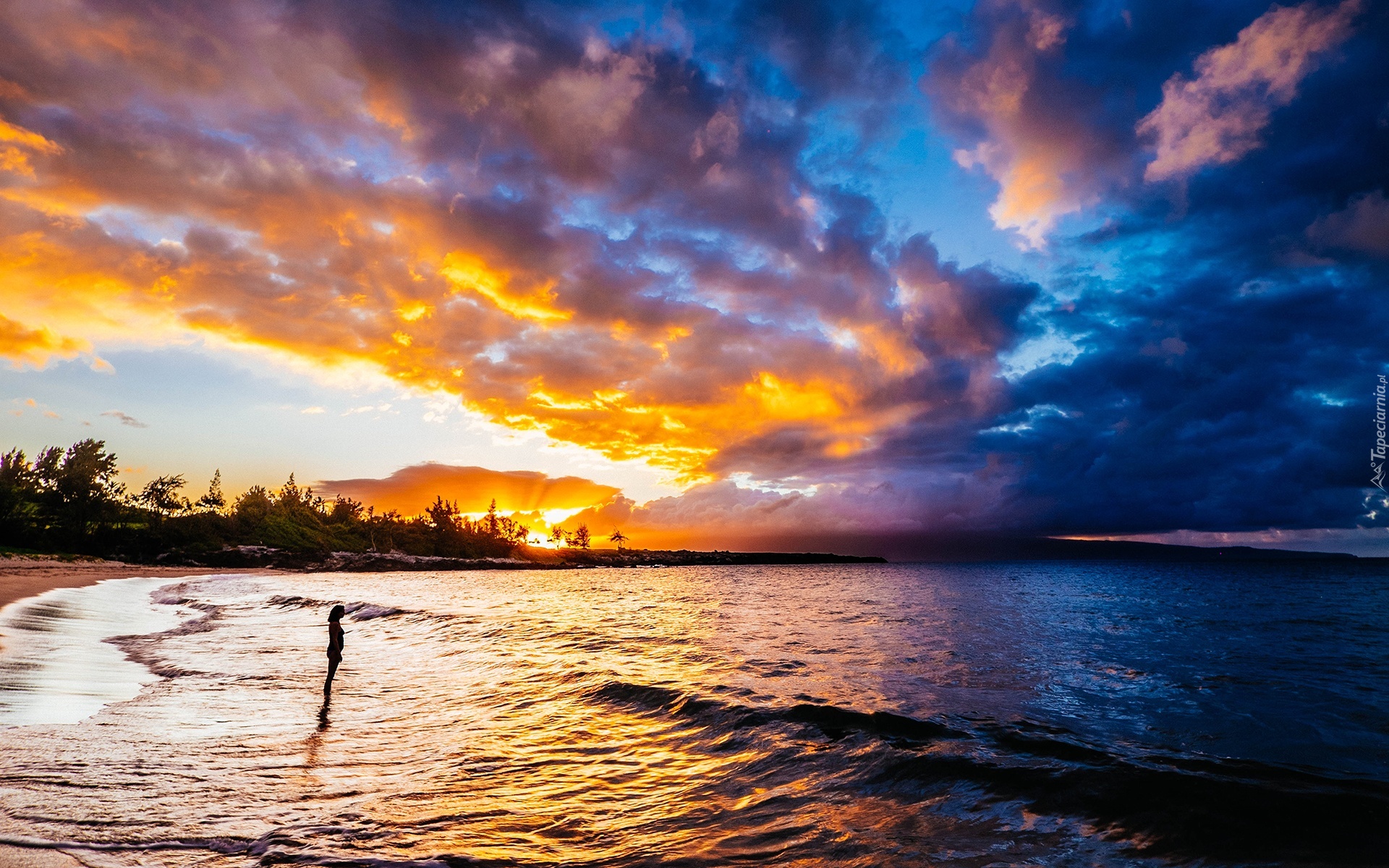 Edytor tapety: Morze, Niebo, Chmury, Kobieta, Drzewa