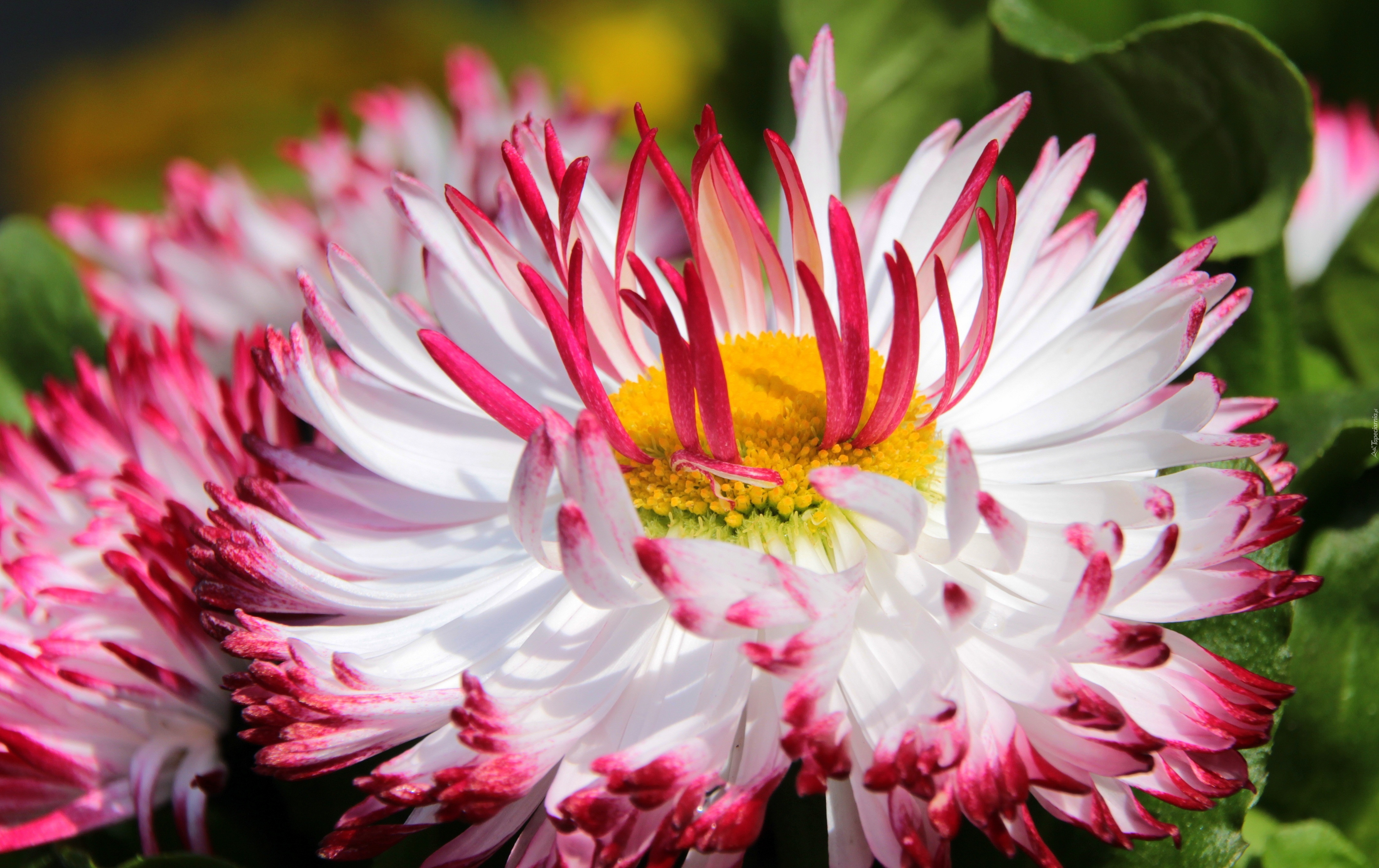 Edytor tapety: Biało, Czerwona, Stokrotka, Makro