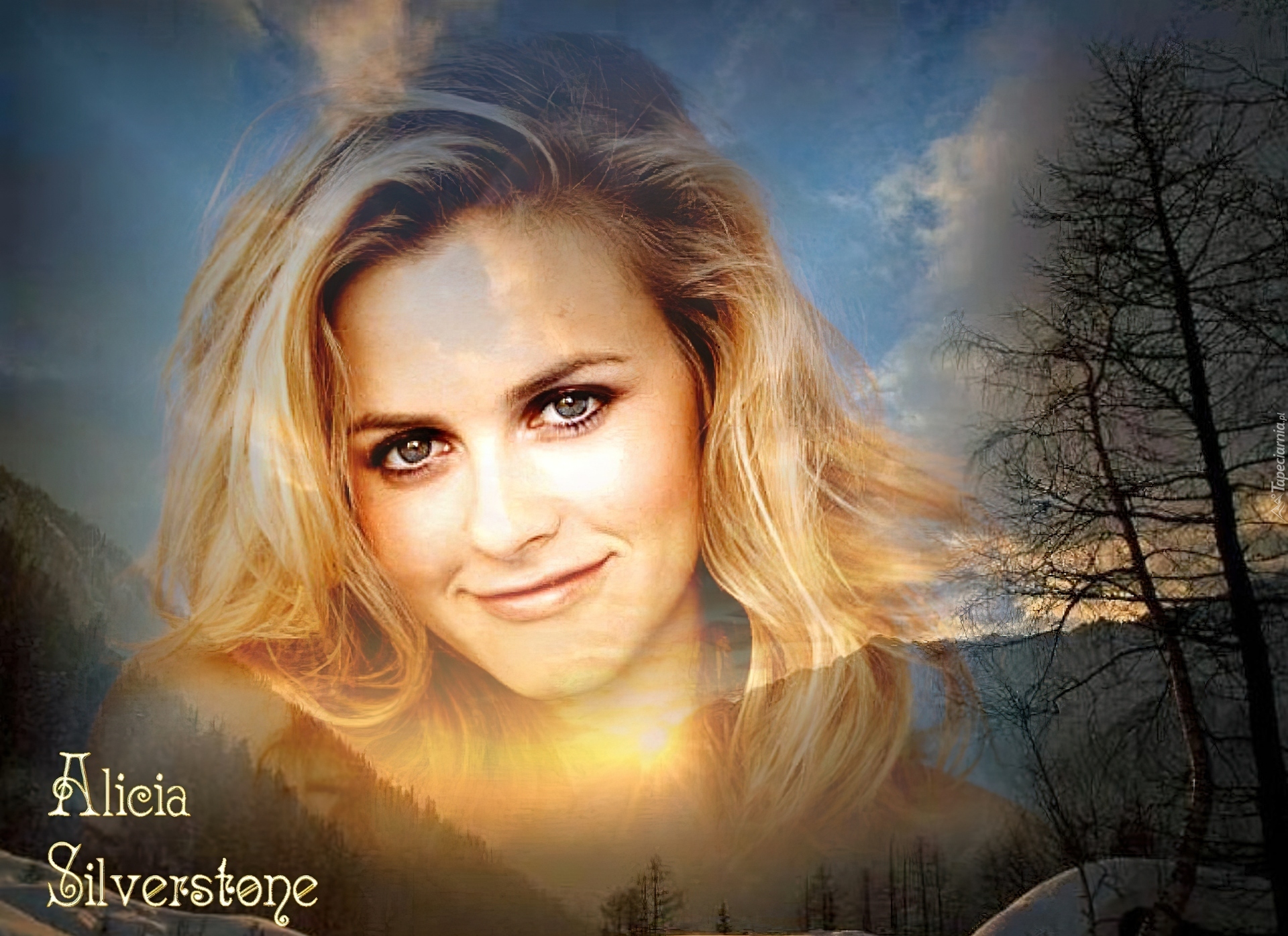 Edytor tapety: Alicia Silverstone,uśmiech, drzewa