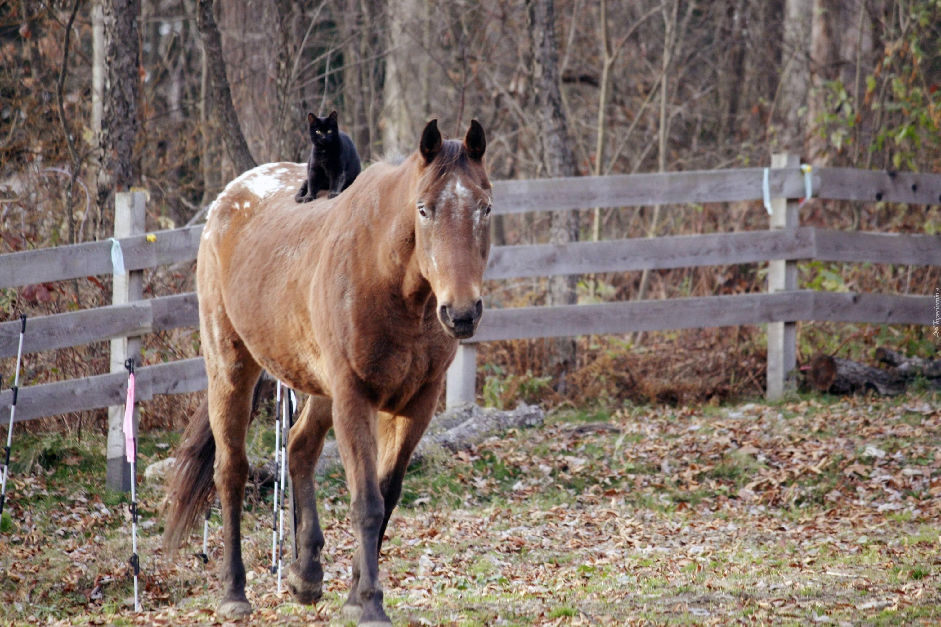 Edytor tapety: Koń, Kot, Ogrodzenie, Przejażdżka