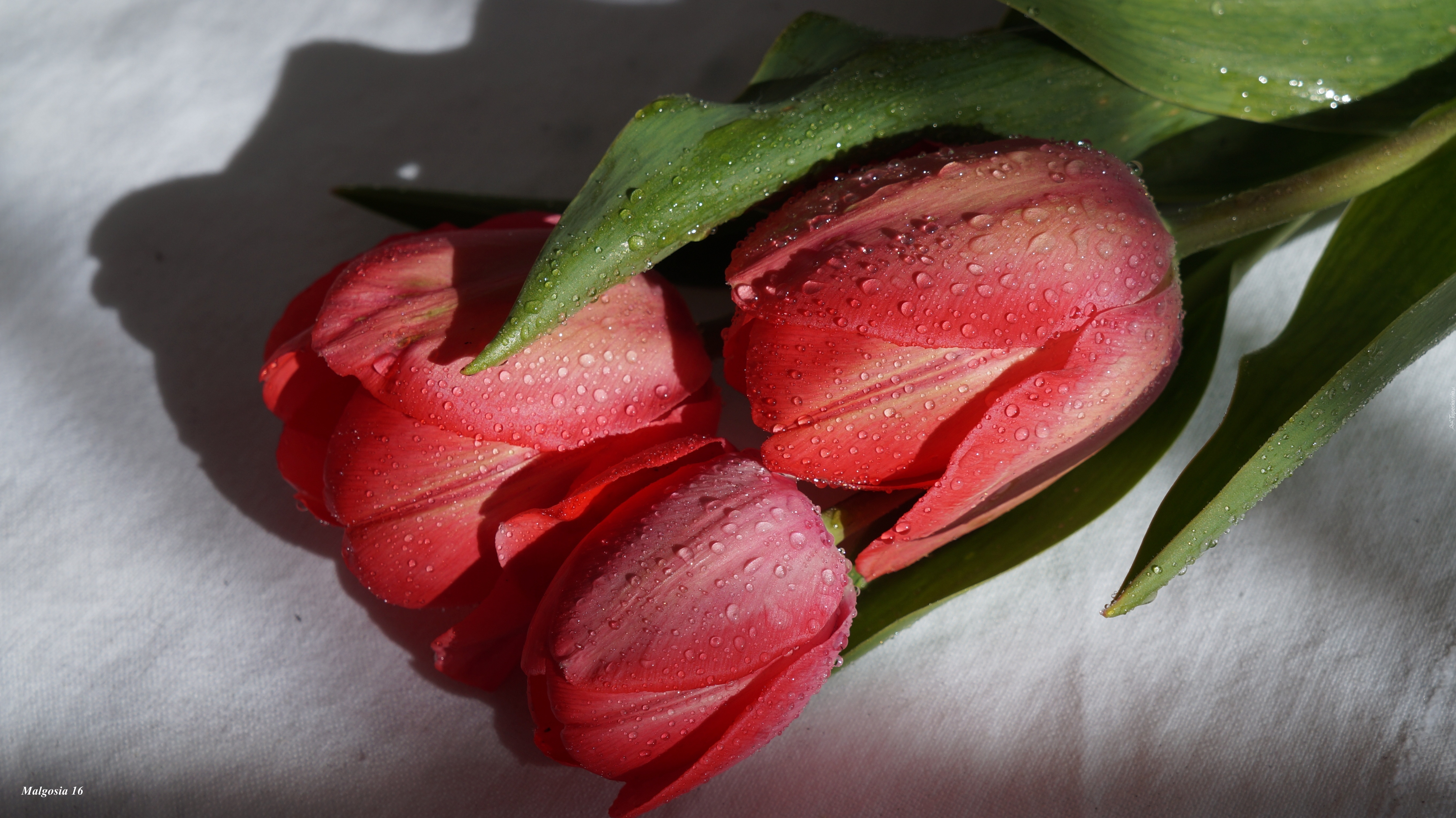 Edytor tapety: Czerwone, Tulipany, Krople