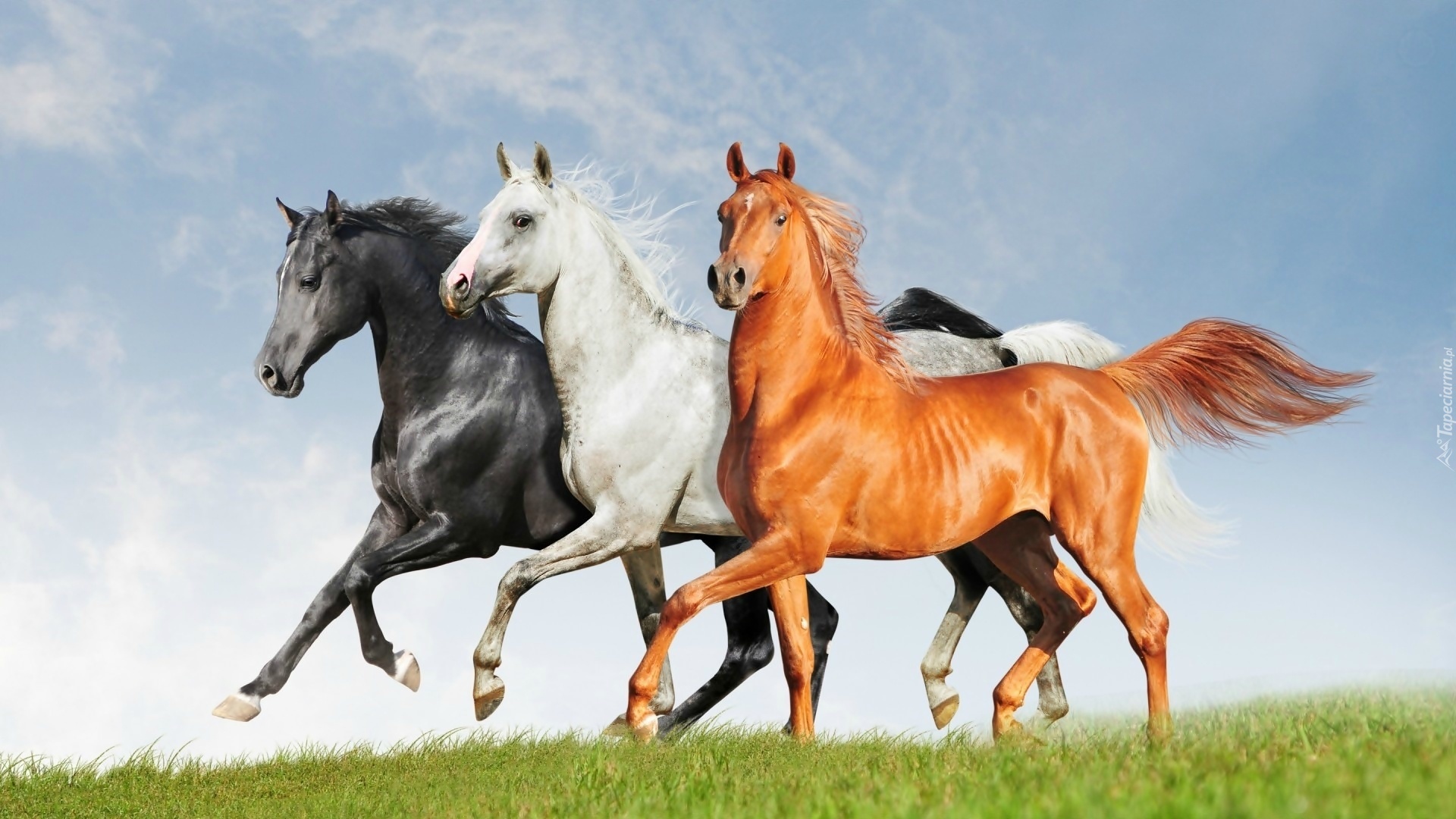 Edytor tapety: Trzy, Piękne, Konie, Łąka