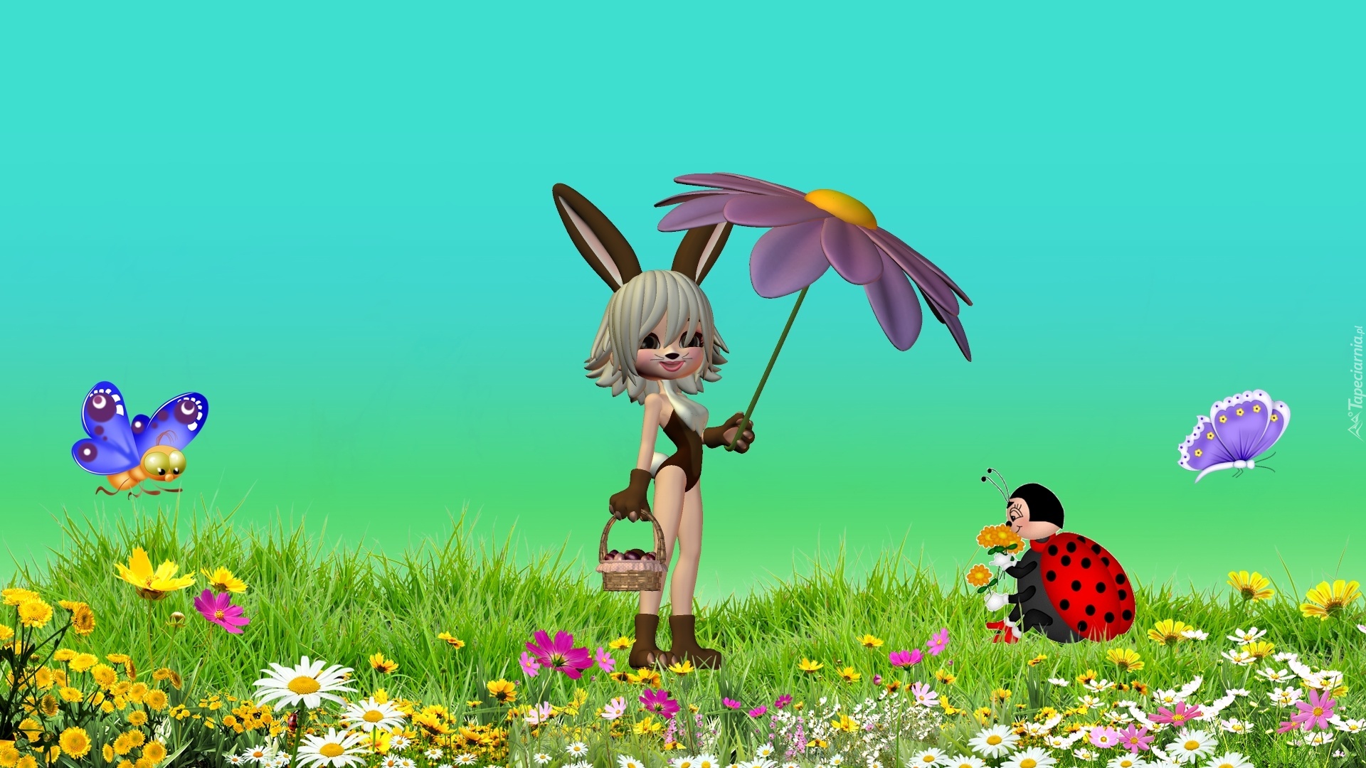 Edytor tapety: Łąka, Kwiaty, Motylki, Biedronka