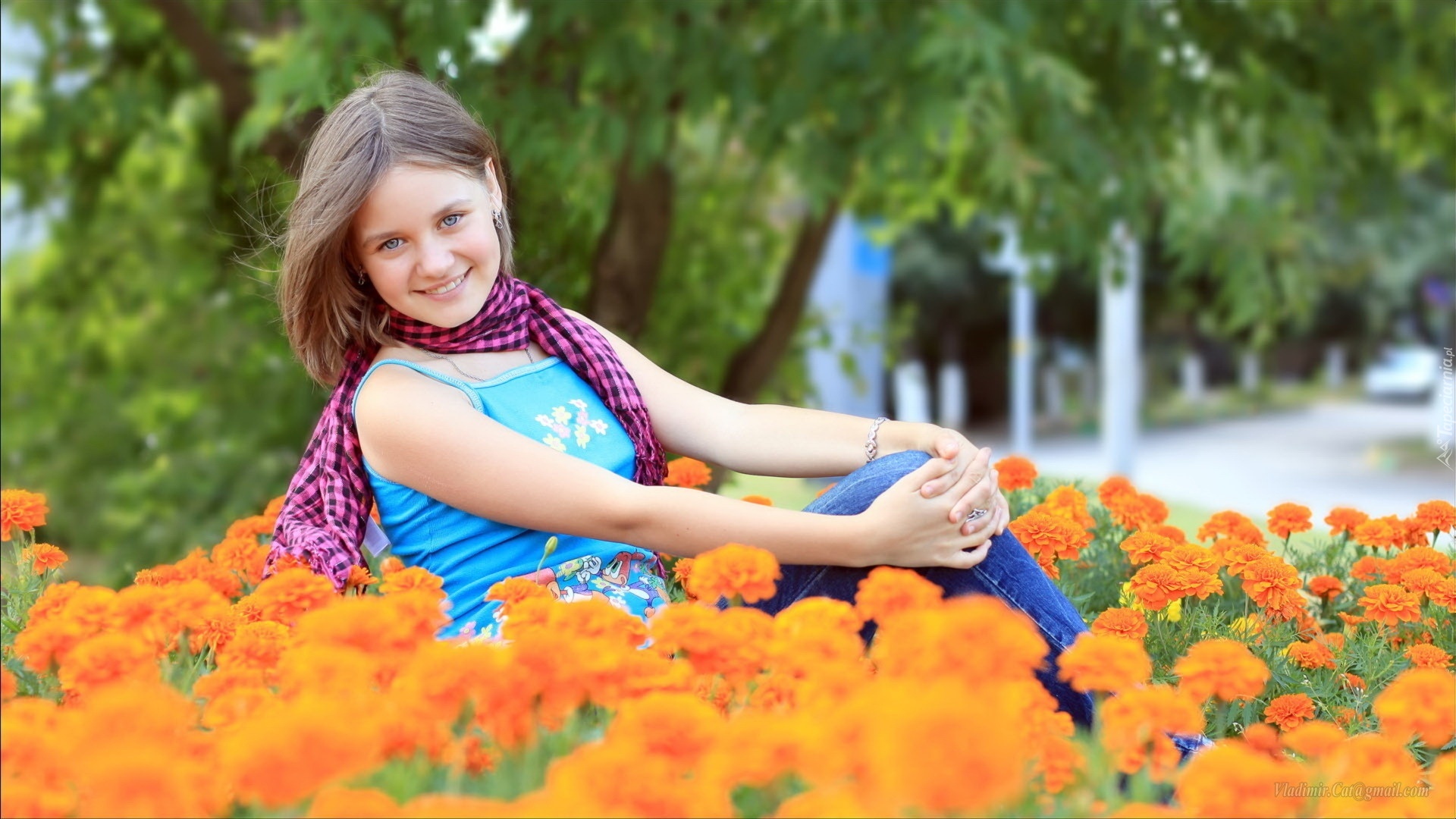 Edytor tapety: Dziewczyna, Nastolatka, Szal, Kwiaty