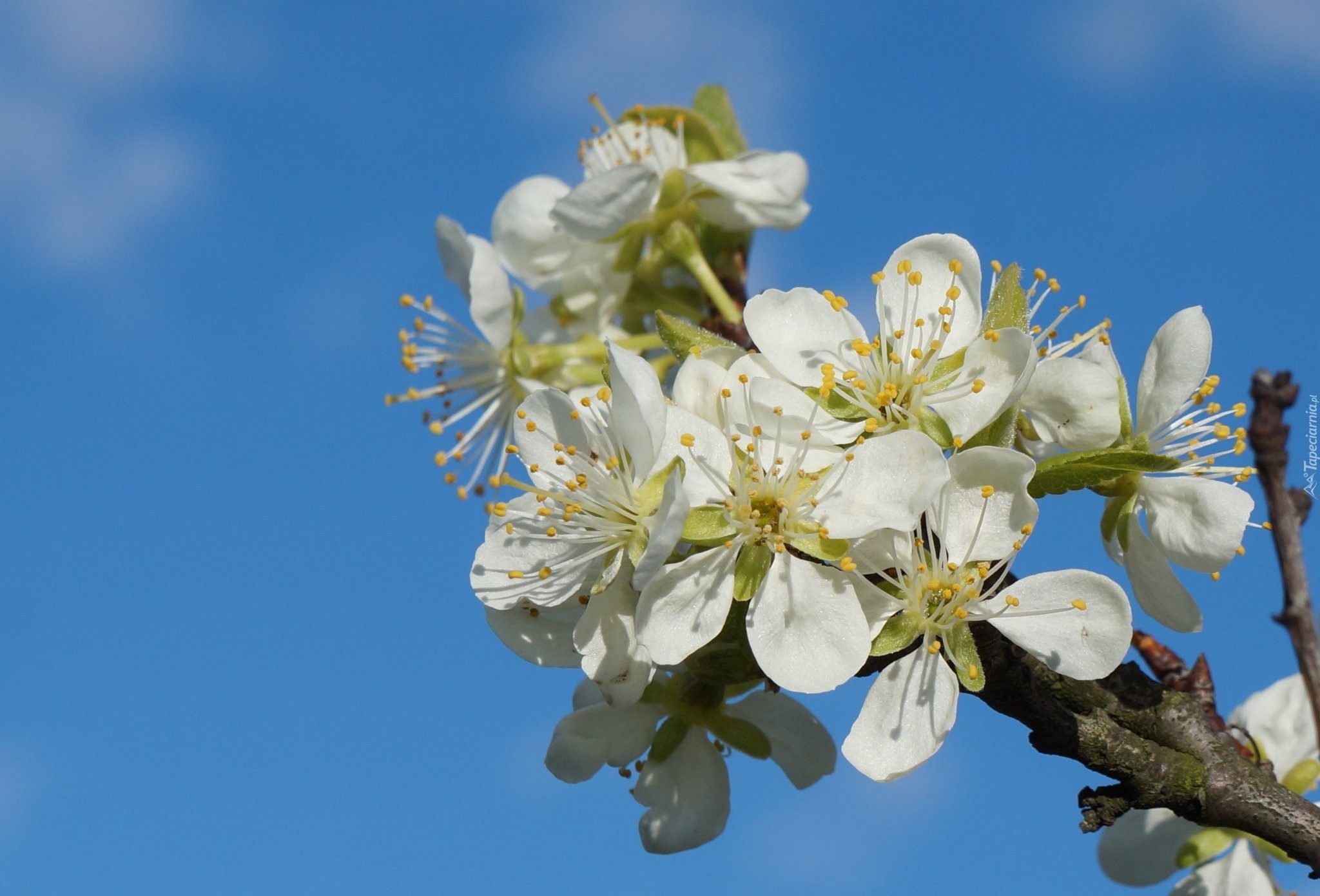 Edytor tapety: Drzewo, Owocowe, Kwitnące, Białe, Kwiaty, Niebieskie, Niebo