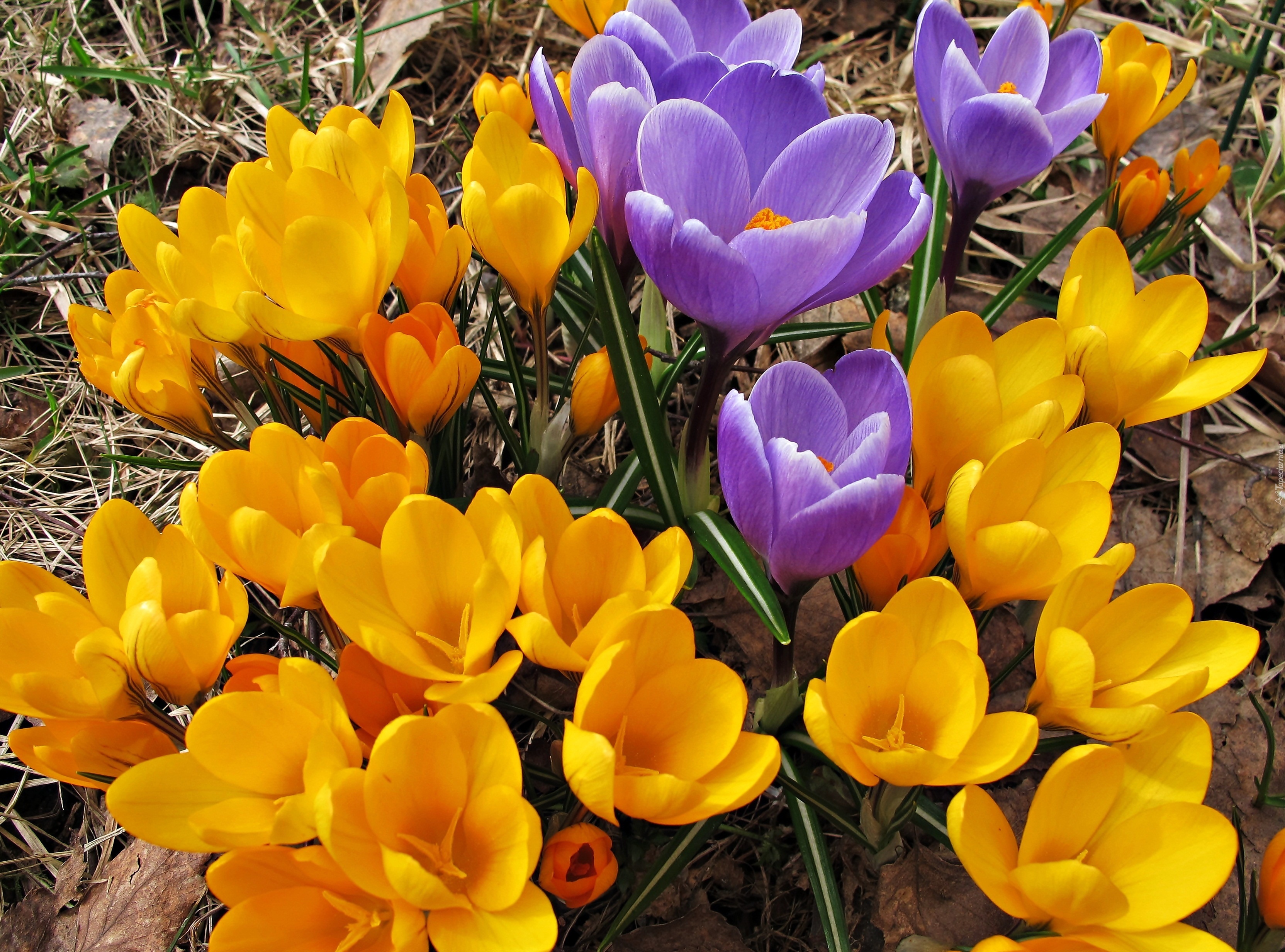 Edytor tapety: Żółte, Fioletowe, Krokusy