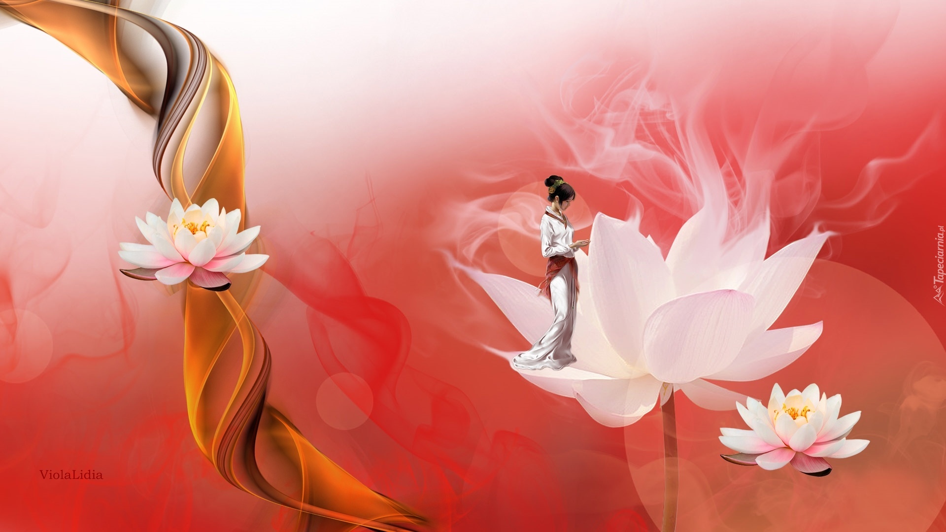 Edytor tapety: Grafika, Kwiaty, Lotosy, Kobieta