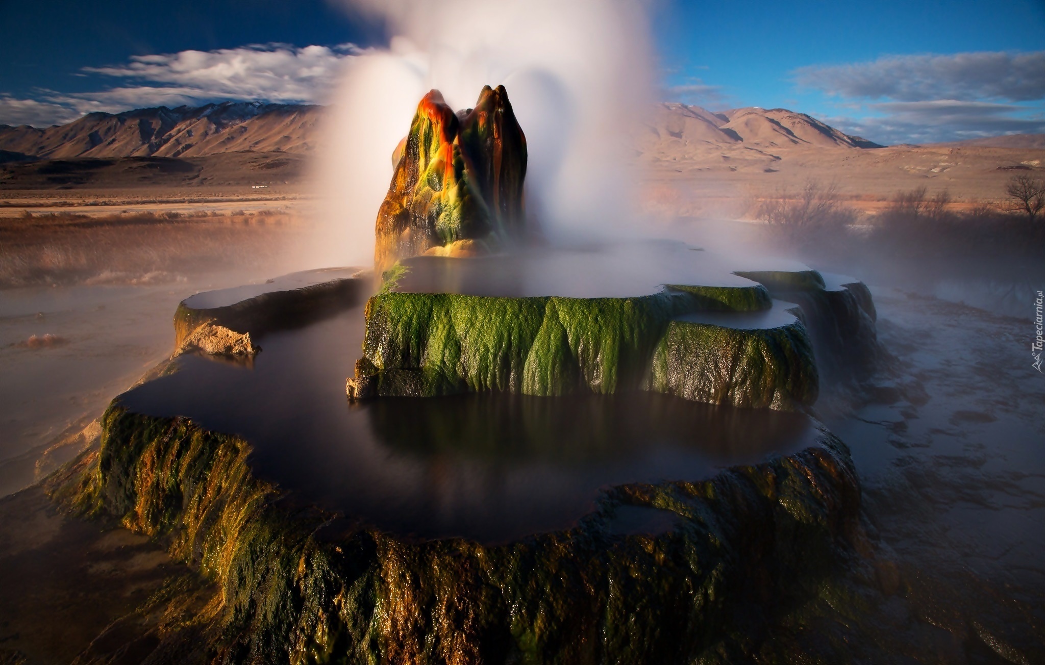 Edytor tapety: Góry, Skały, Woda, Gejzer, Świt